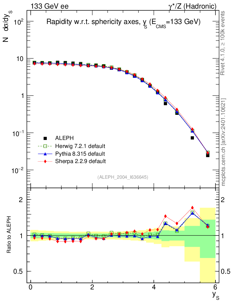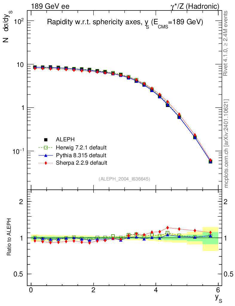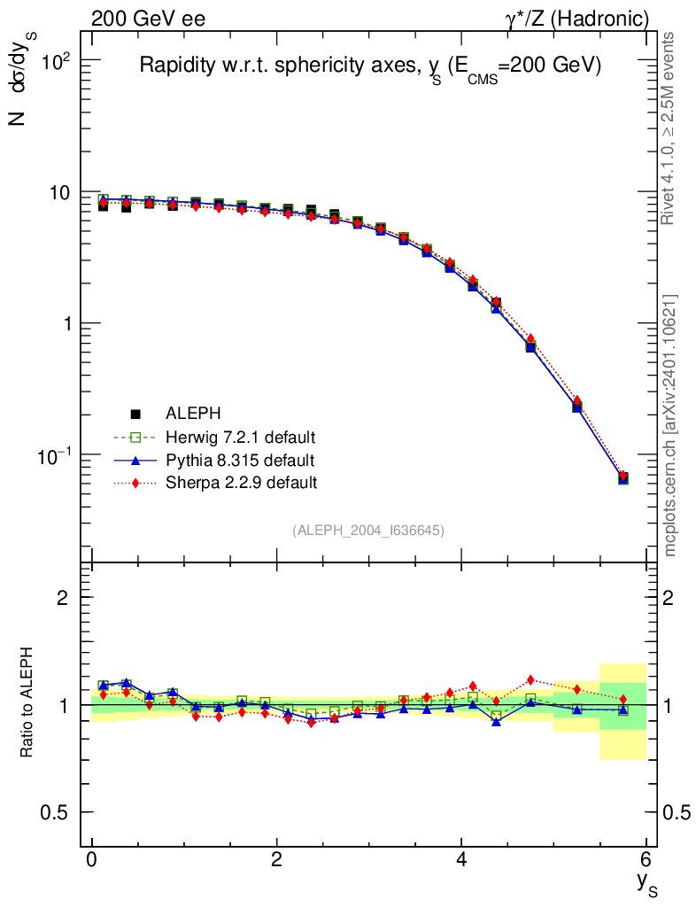 ee : γ*/Z (hadronic) : Charged Particles : Rapidity wrt Sphericity axis