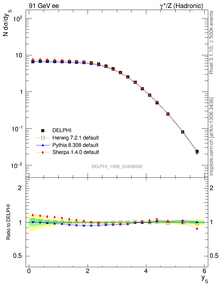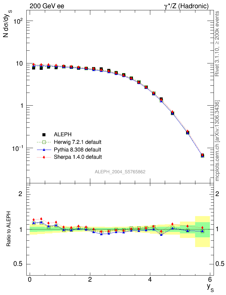 ee : γ*/Z (hadronic) : Charged Particles : Rapidity wrt Sphericity axis