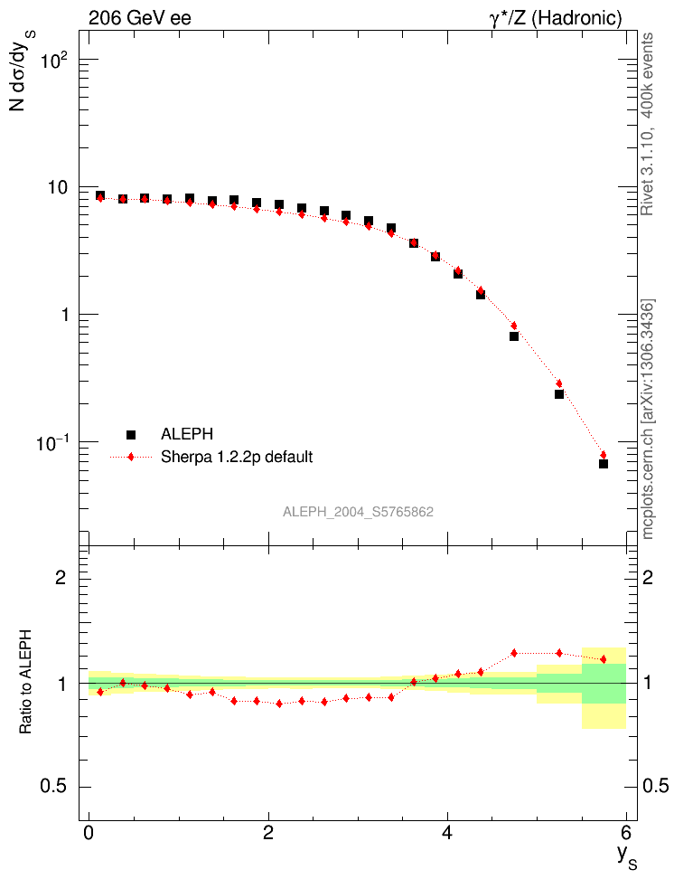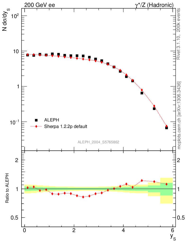 ee : γ*/Z (hadronic) : Charged Particles : Rapidity wrt Sphericity axis