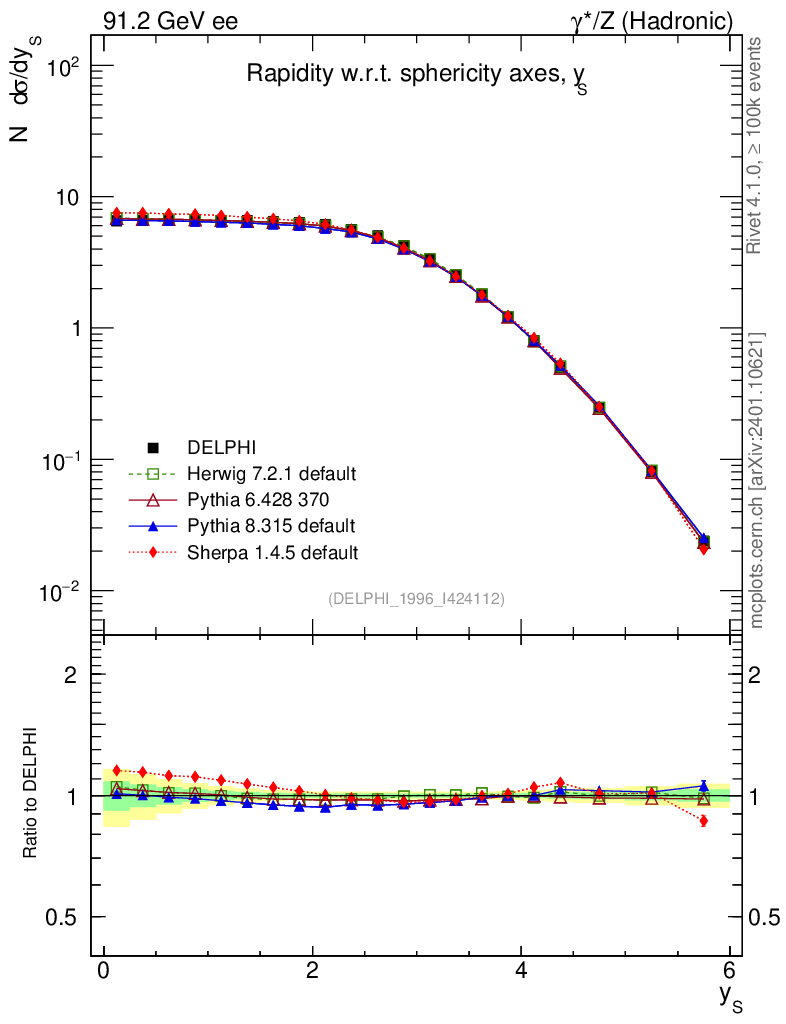 ee : γ*/Z (hadronic) : Charged Particles : Rapidity wrt Sphericity axis