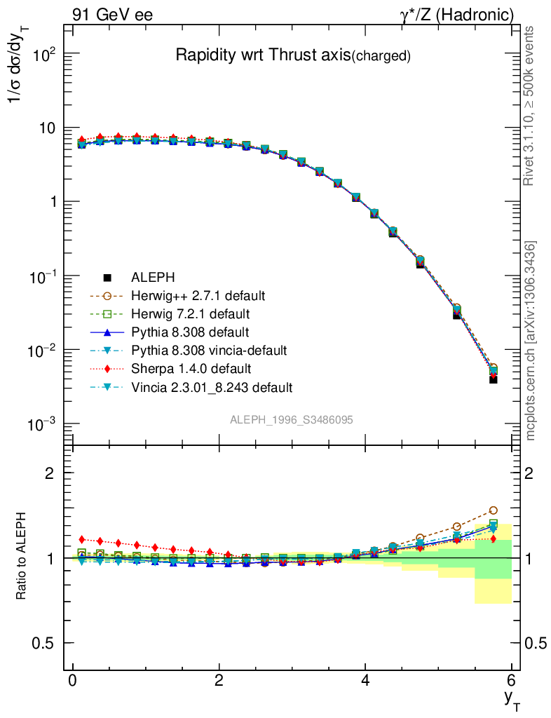 ee : γ*/Z (hadronic) : Charged Particles : Rapidity wrt Thrust axis