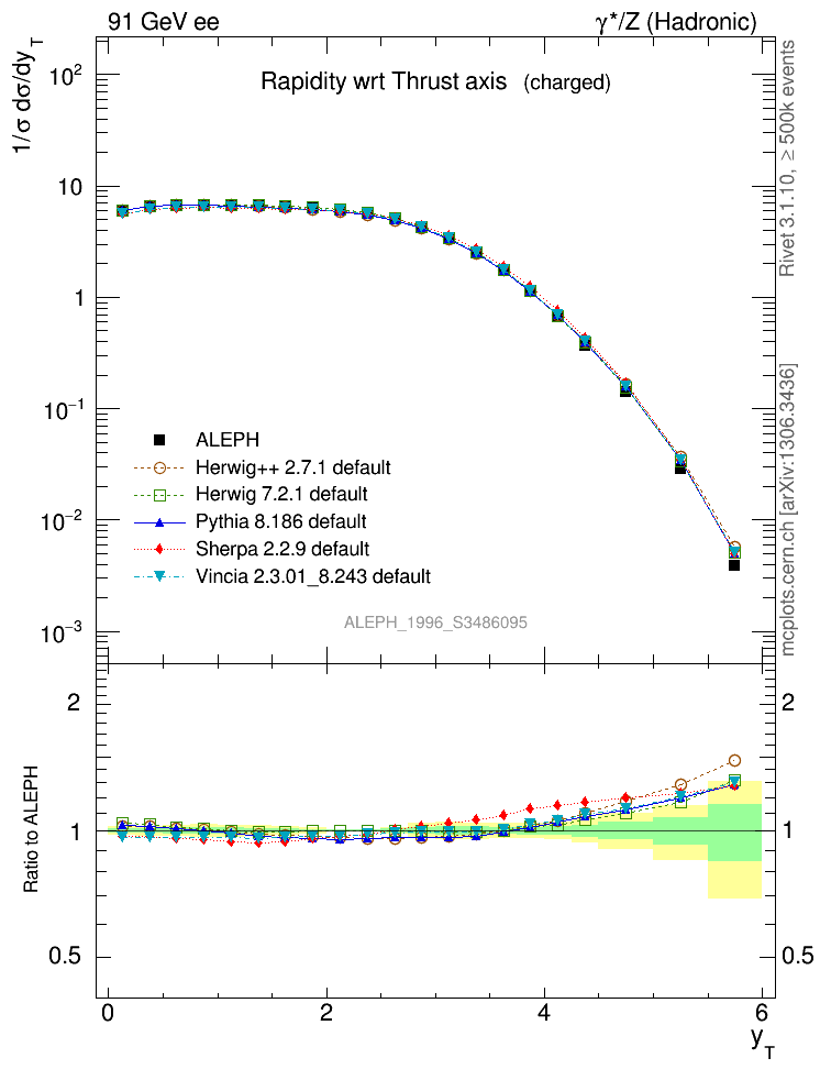 ee : γ*/Z (hadronic) : Charged Particles : Rapidity wrt Thrust axis