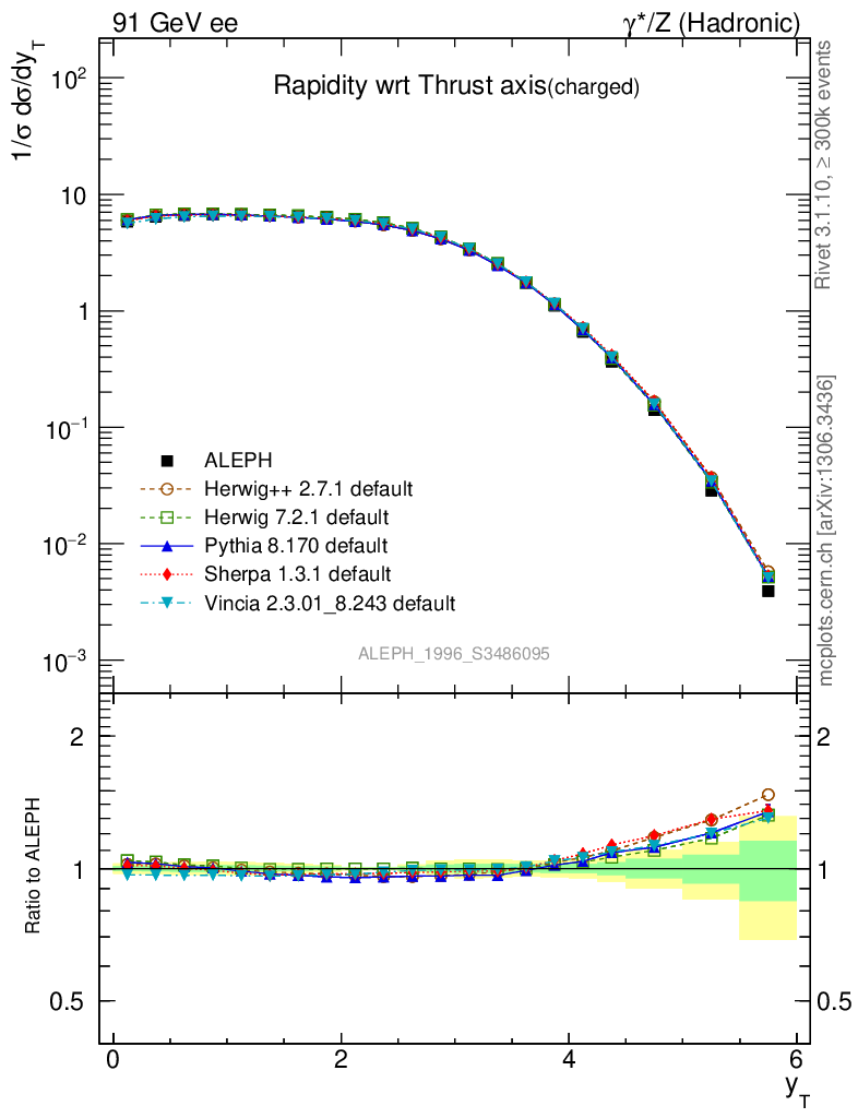 ee : γ*/Z (hadronic) : Charged Particles : Rapidity wrt Thrust axis