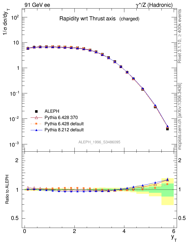 ee : γ*/Z (hadronic) : Charged Particles : Rapidity wrt Thrust axis