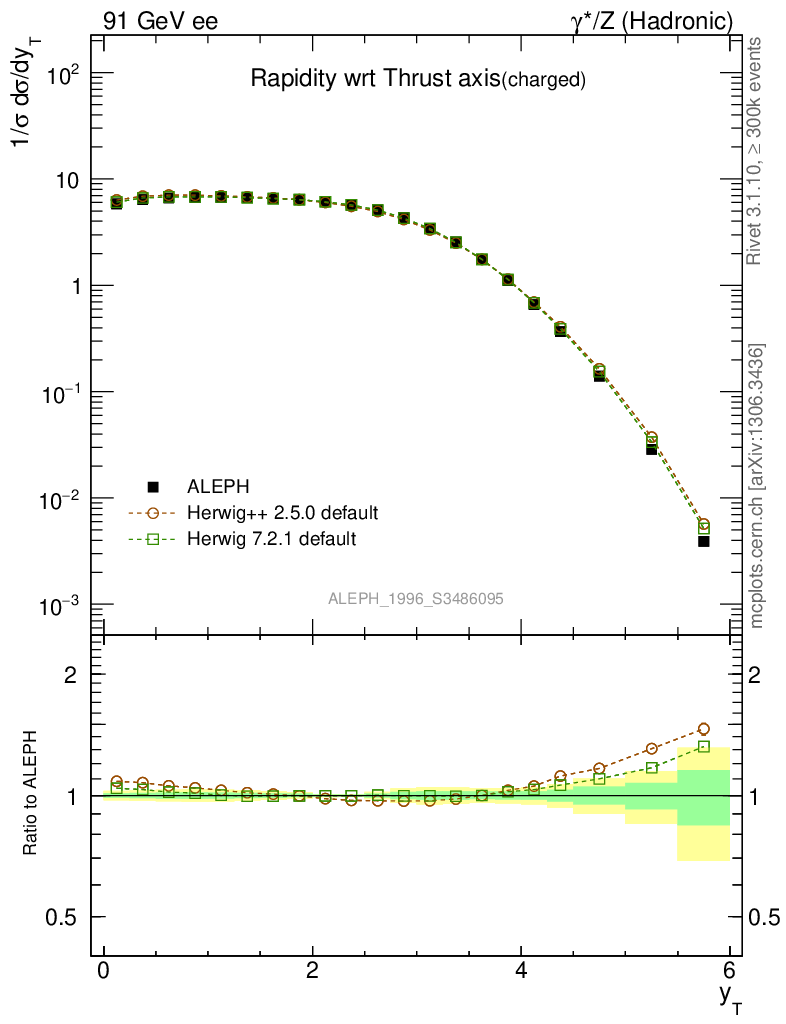 ee : γ*/Z (hadronic) : Charged Particles : Rapidity wrt Thrust axis