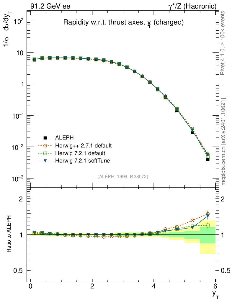 ee : γ*/Z (hadronic) : Charged Particles : Rapidity wrt Thrust axis
