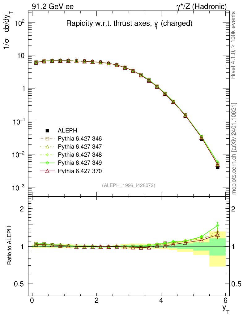 ee : γ*/Z (hadronic) : Charged Particles : Rapidity wrt Thrust axis