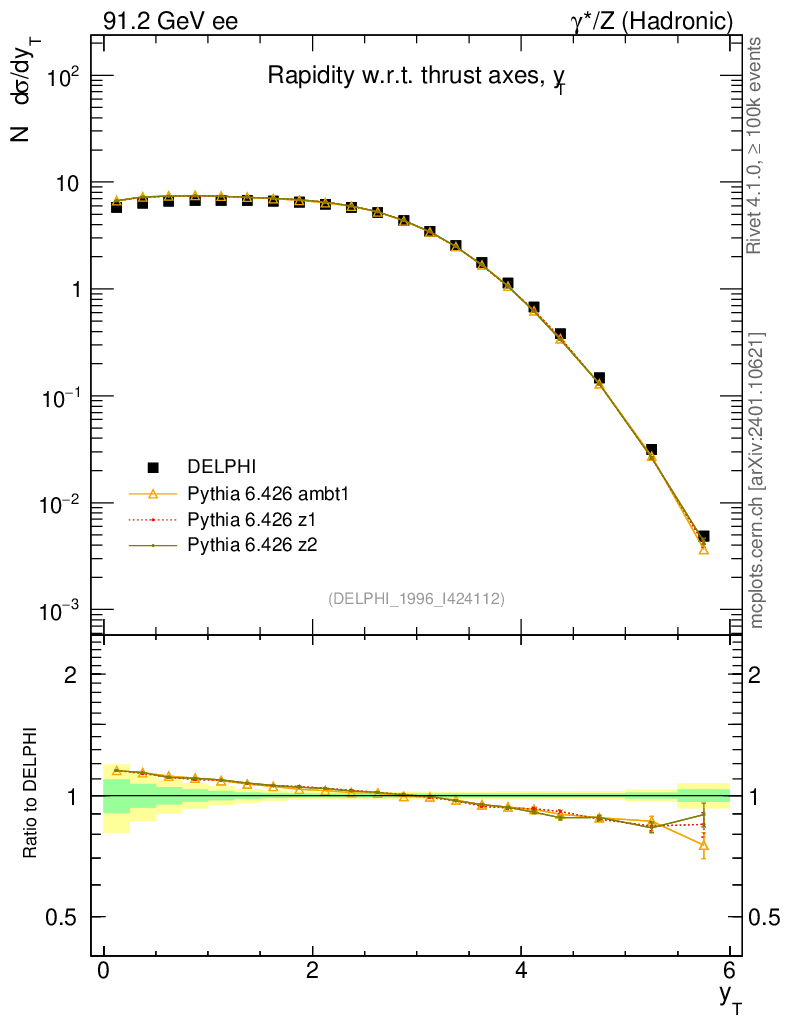 ee : γ*/Z (hadronic) : Charged Particles : Rapidity wrt Thrust axis