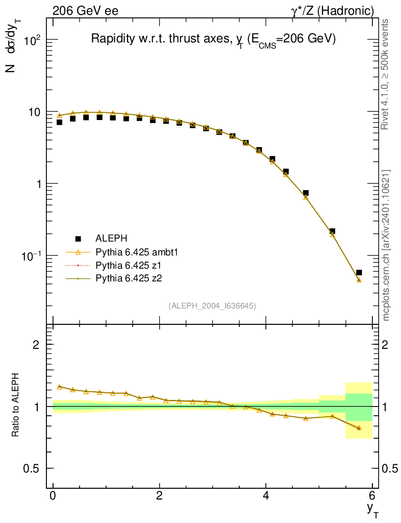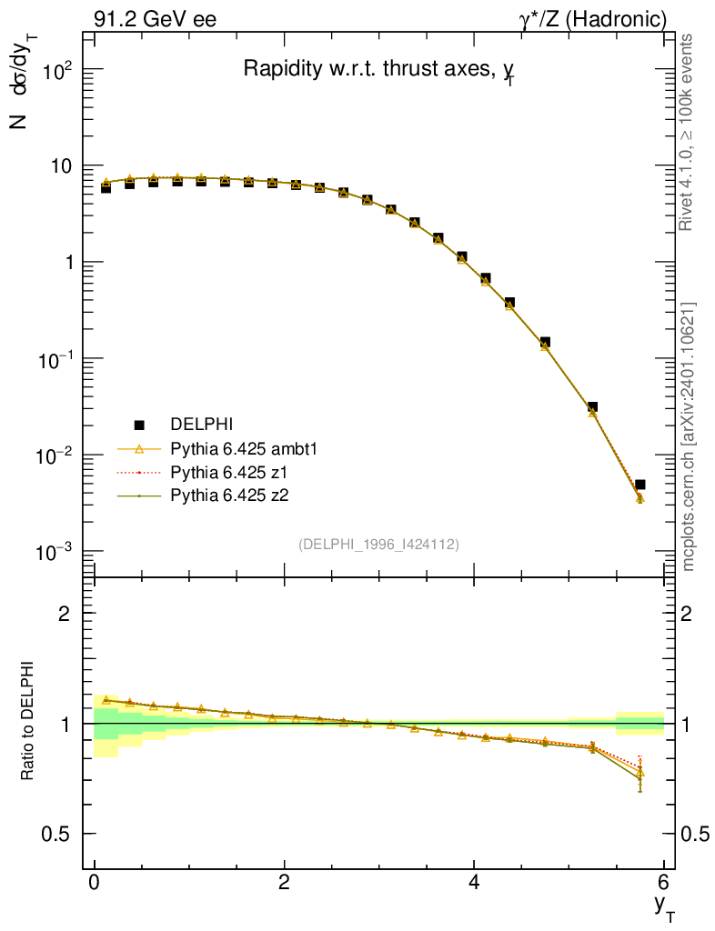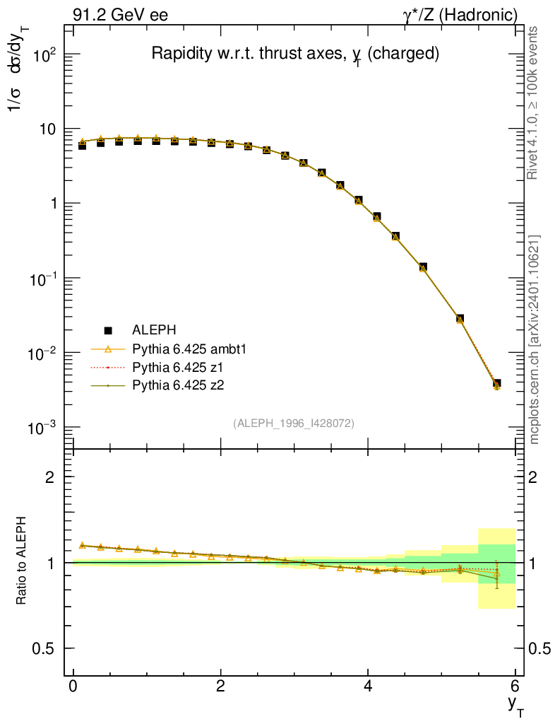 ee : γ*/Z (hadronic) : Charged Particles : Rapidity wrt Thrust axis