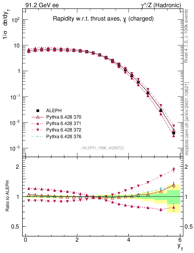 ee : γ*/Z (hadronic) : Charged Particles : Rapidity wrt Thrust axis
