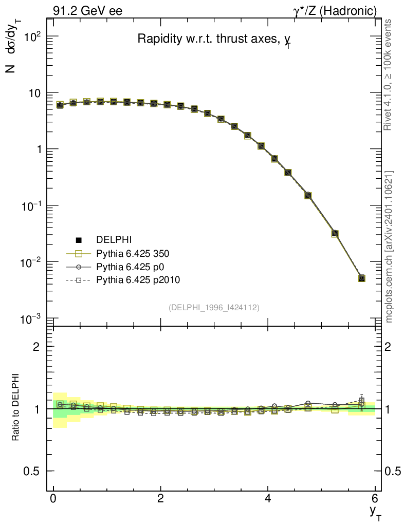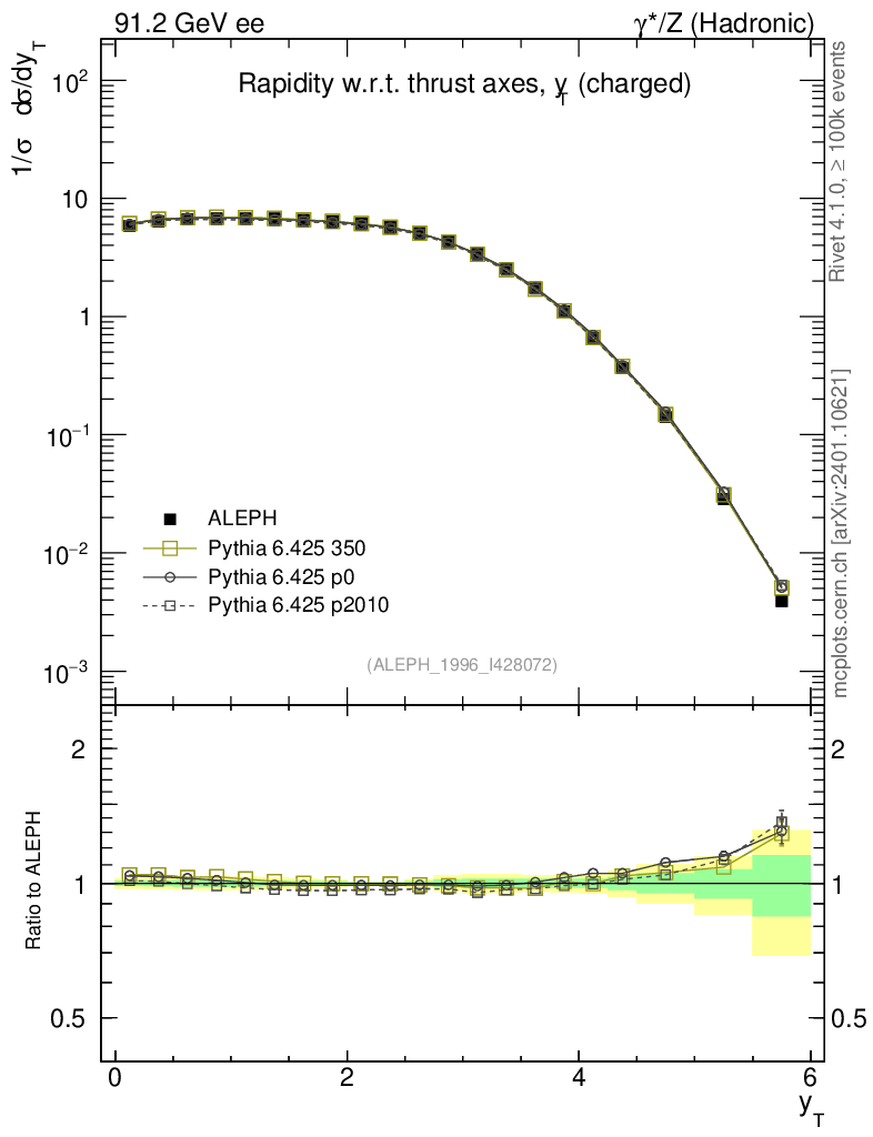 ee : γ*/Z (hadronic) : Charged Particles : Rapidity wrt Thrust axis