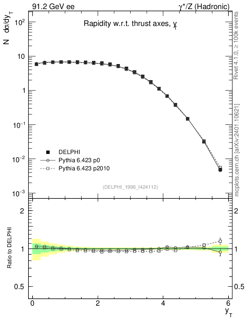 ee : γ*/Z (hadronic) : Charged Particles : Rapidity wrt Thrust axis