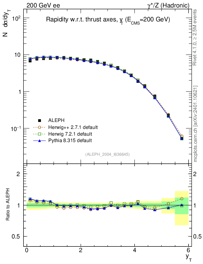 ee : γ*/Z (hadronic) : Charged Particles : Rapidity wrt Thrust axis