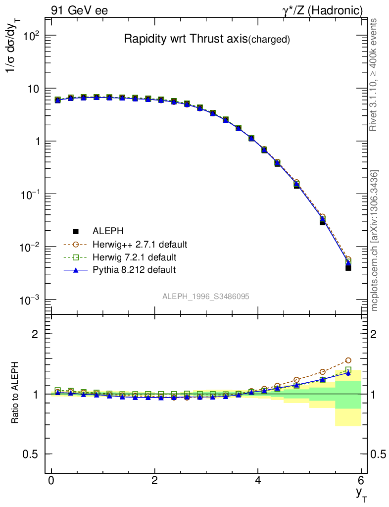 ee : γ*/Z (hadronic) : Charged Particles : Rapidity wrt Thrust axis