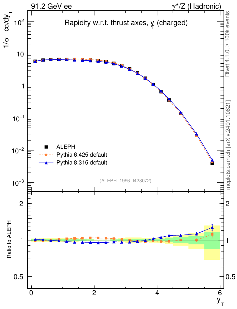 ee : γ*/Z (hadronic) : Charged Particles : Rapidity wrt Thrust axis