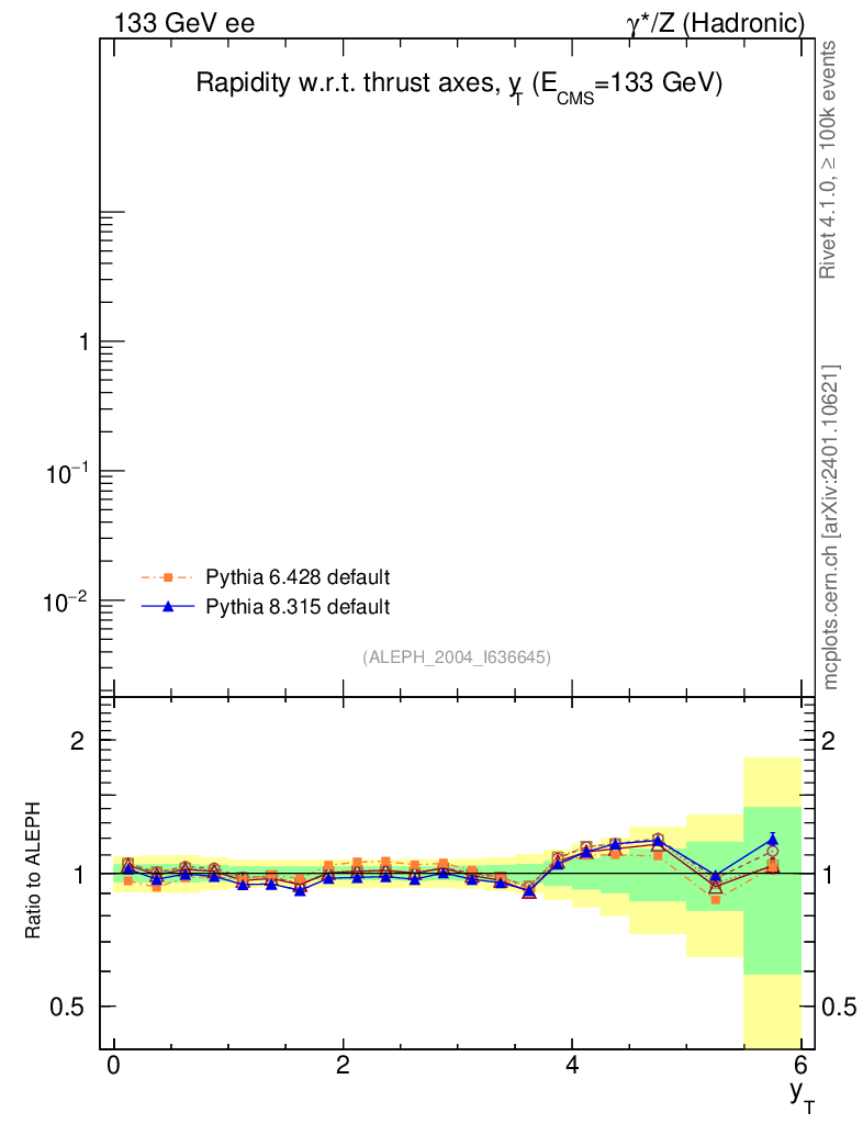 ee : γ*/Z (hadronic) : Charged Particles : Rapidity wrt Thrust axis