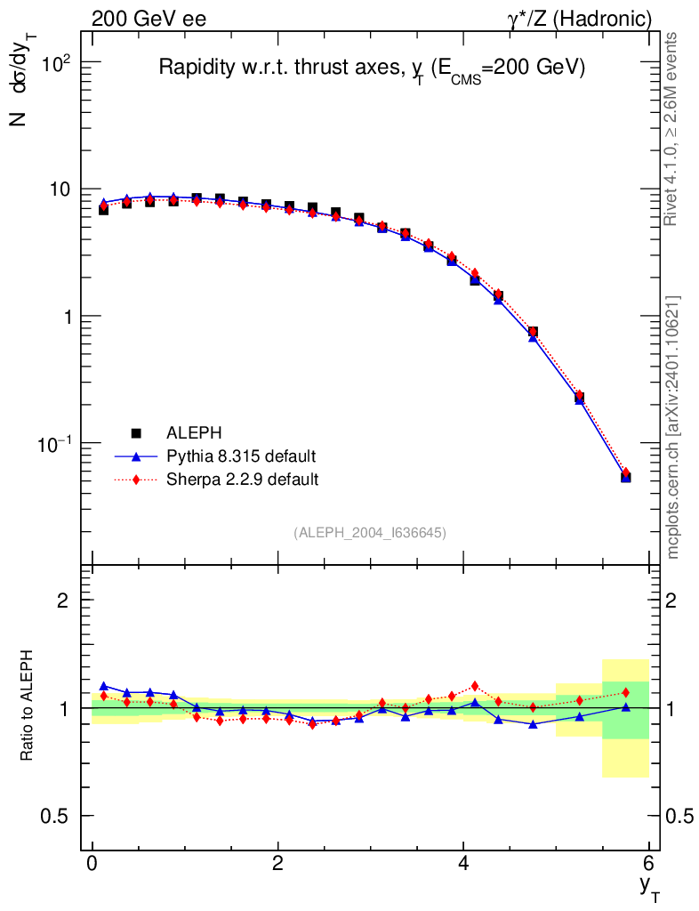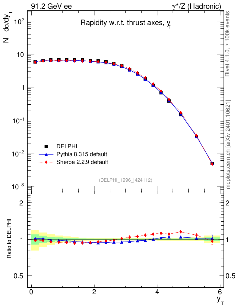 ee : γ*/Z (hadronic) : Charged Particles : Rapidity wrt Thrust axis