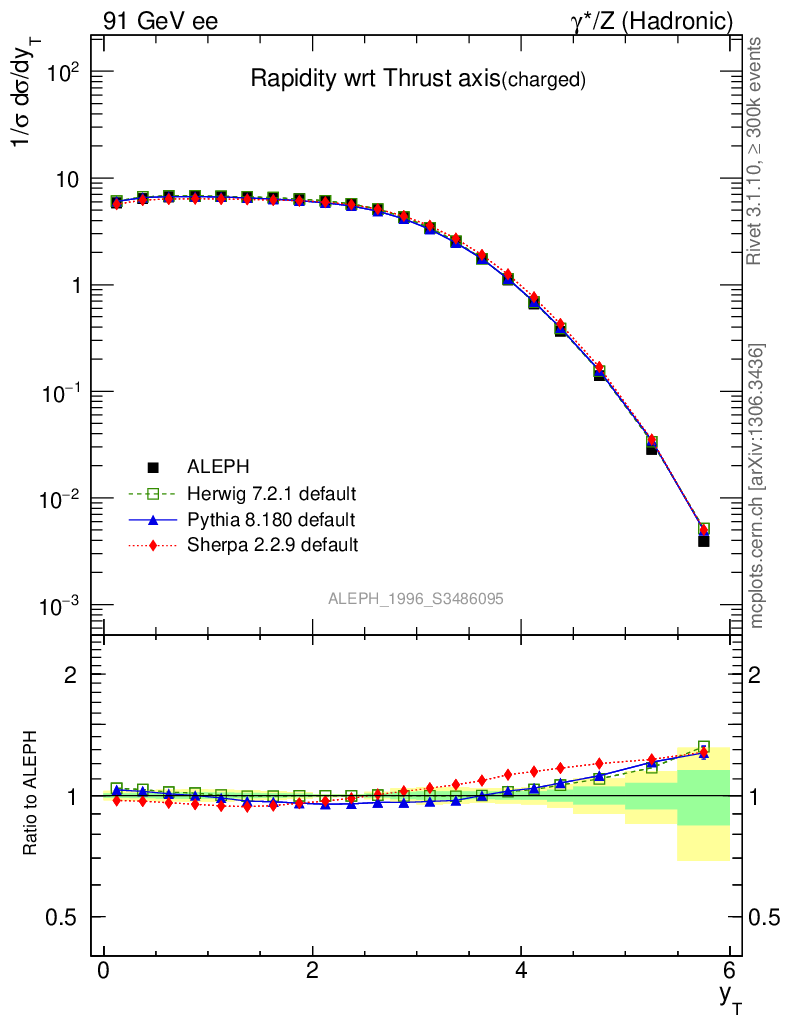 ee : γ*/Z (hadronic) : Charged Particles : Rapidity wrt Thrust axis