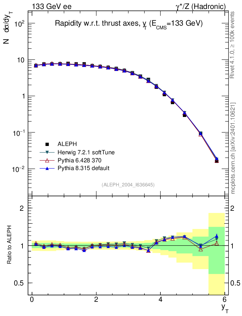 ee : γ*/Z (hadronic) : Charged Particles : Rapidity wrt Thrust axis
