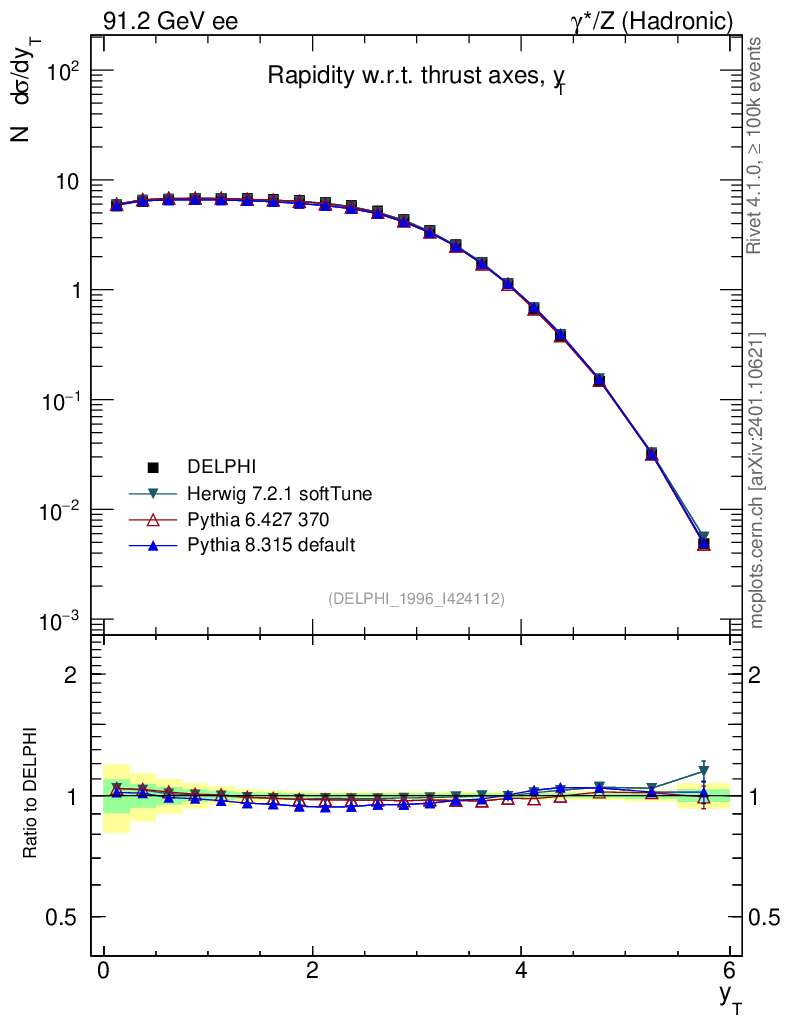 ee : γ*/Z (hadronic) : Charged Particles : Rapidity wrt Thrust axis