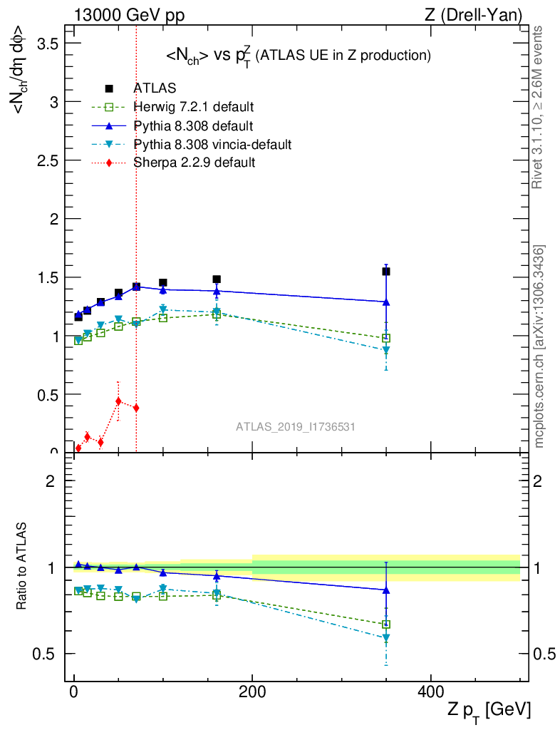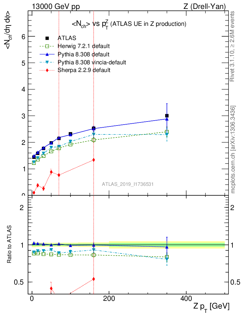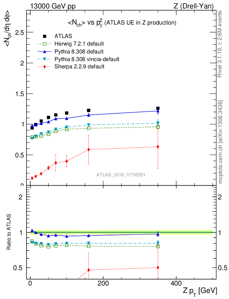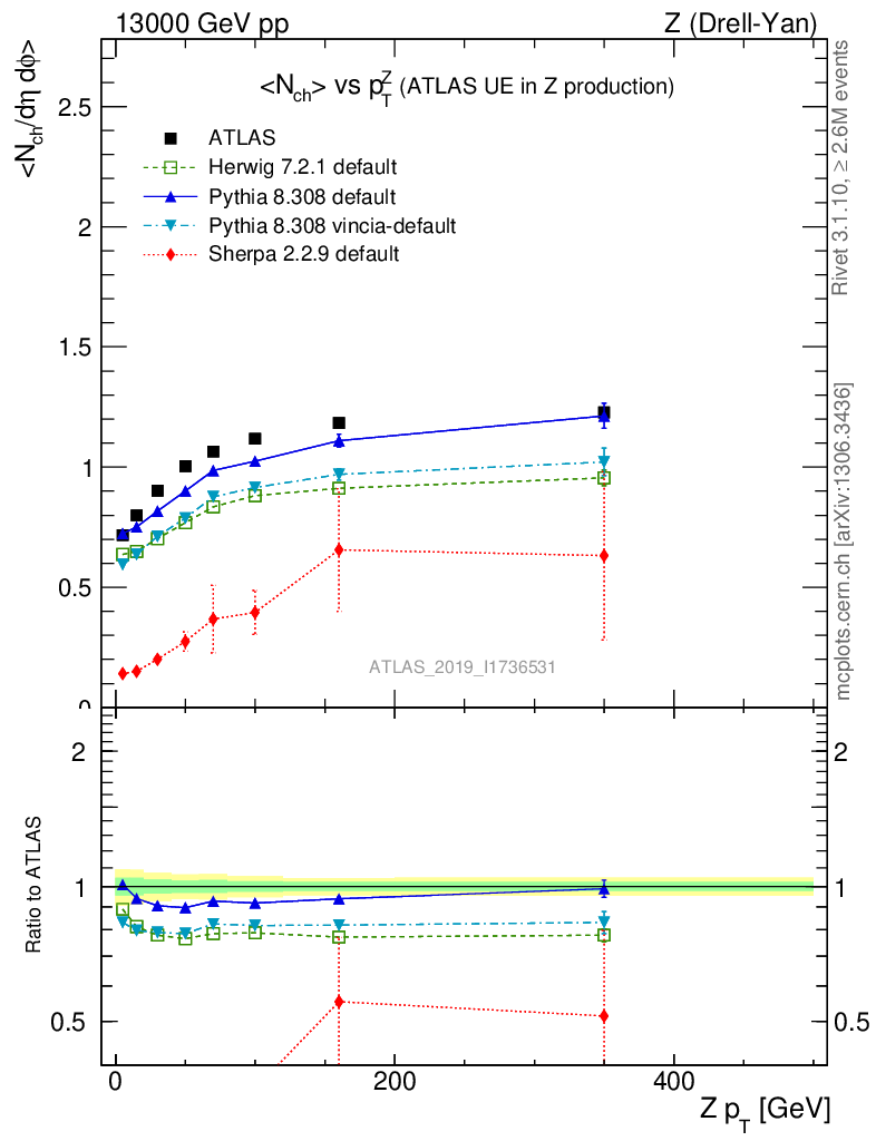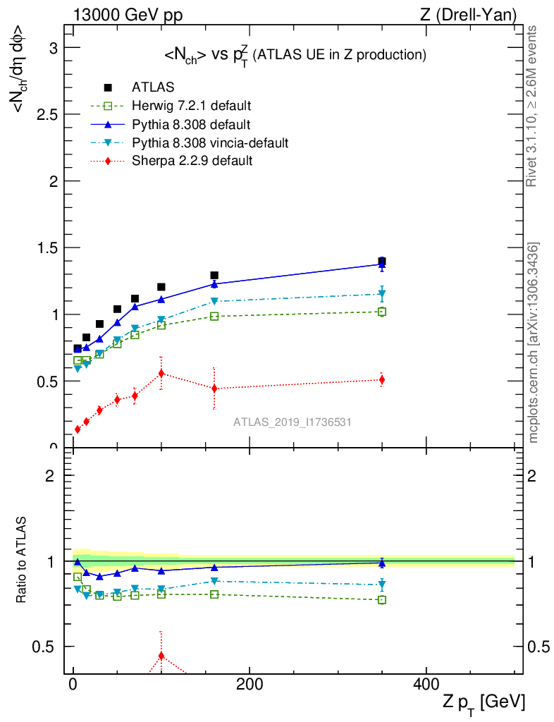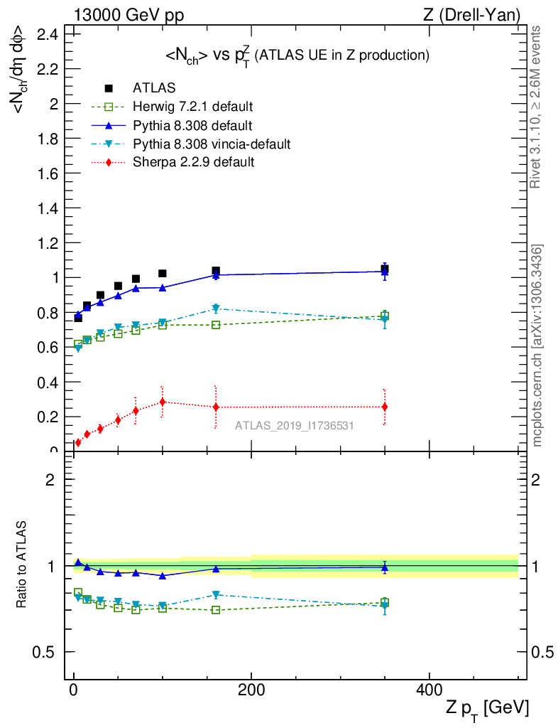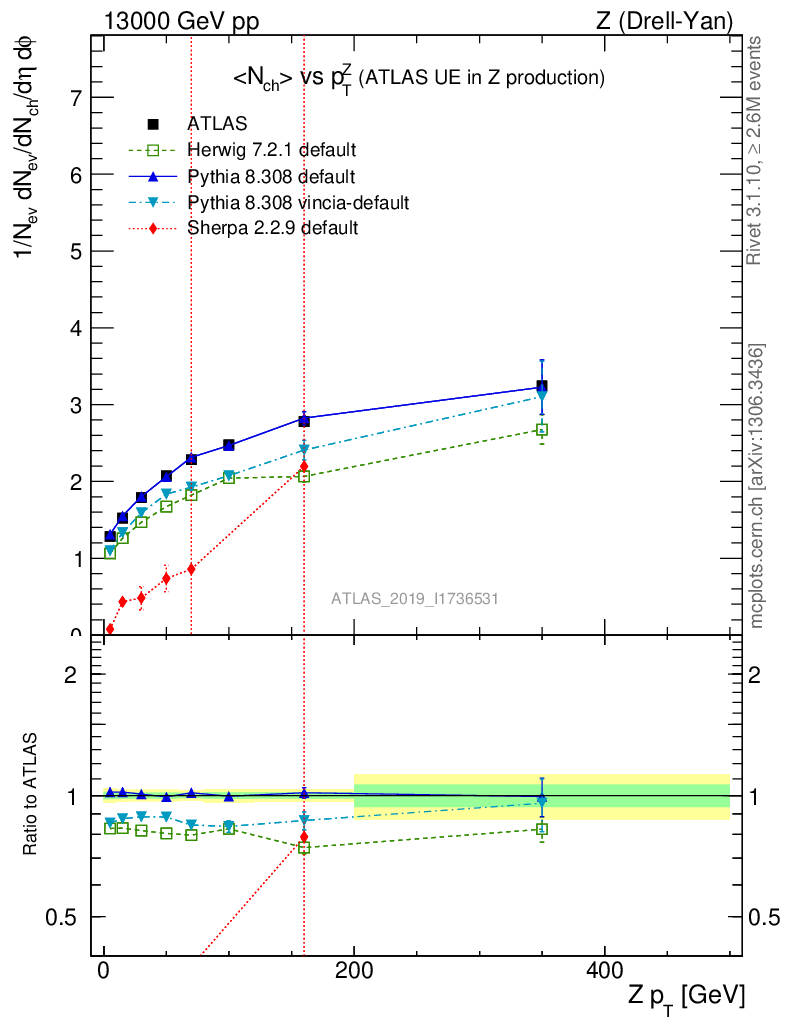 Z (Drell-Yan) : Underlying event : <Nch> vs p