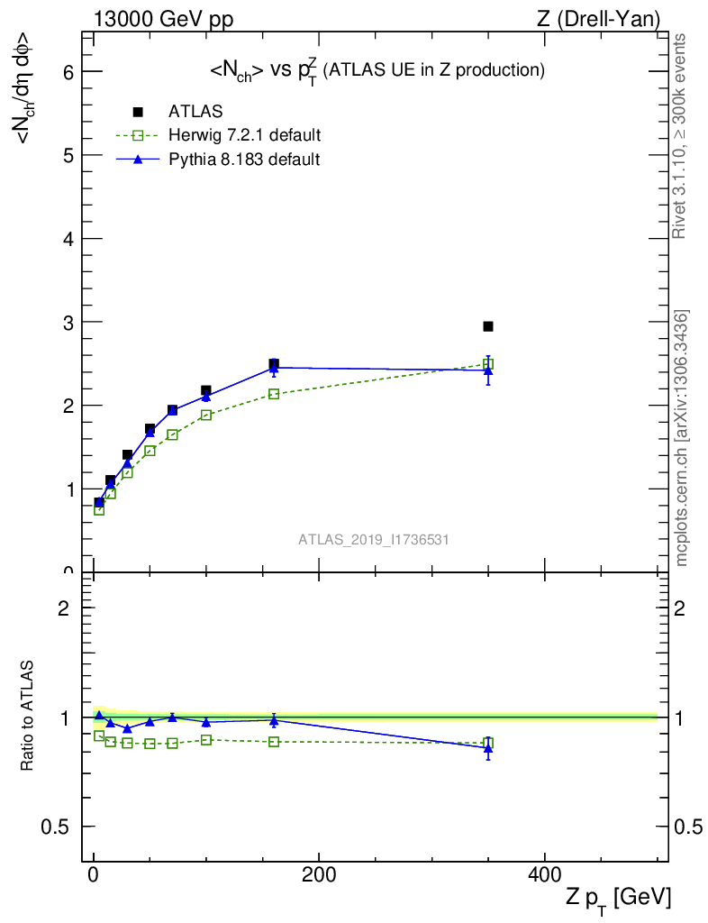Z (Drell-Yan) : Underlying event : <Nch> vs p