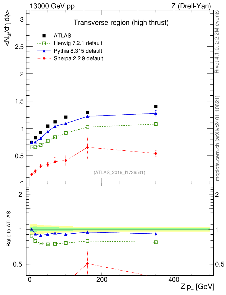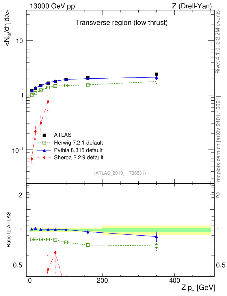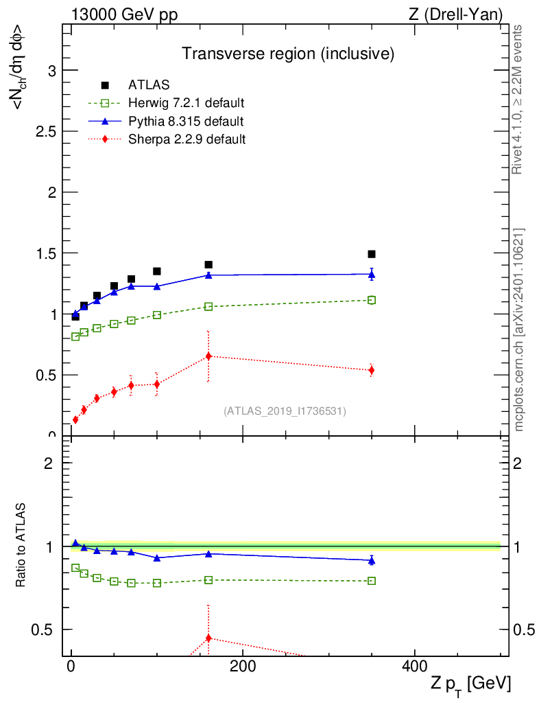 Z (Drell-Yan) : Underlying event : <Nch> vs p