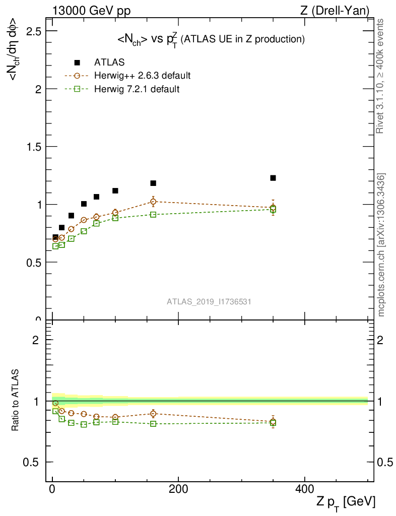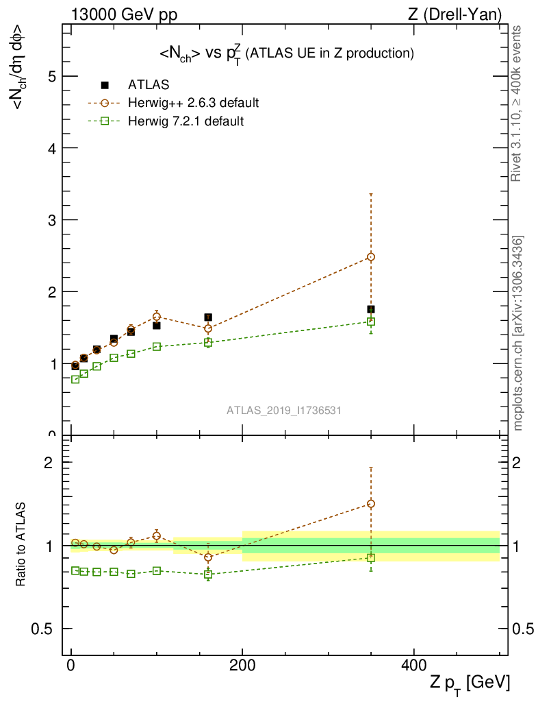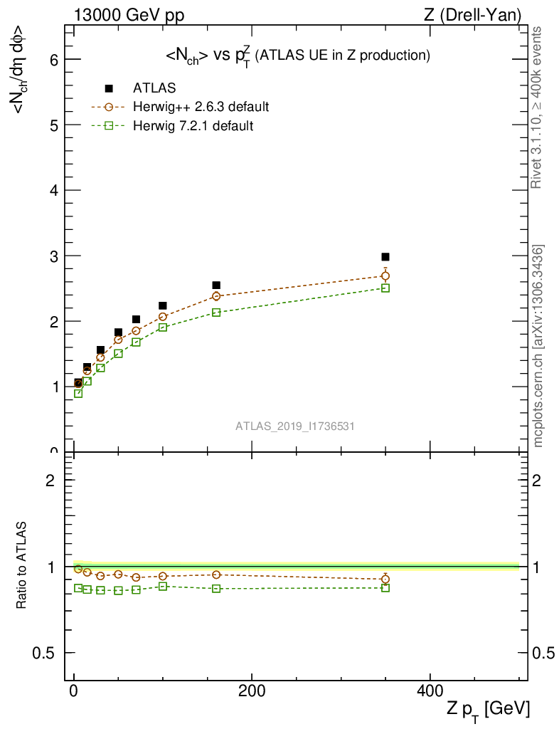 Z (Drell-Yan) : Underlying event : <Nch> vs p