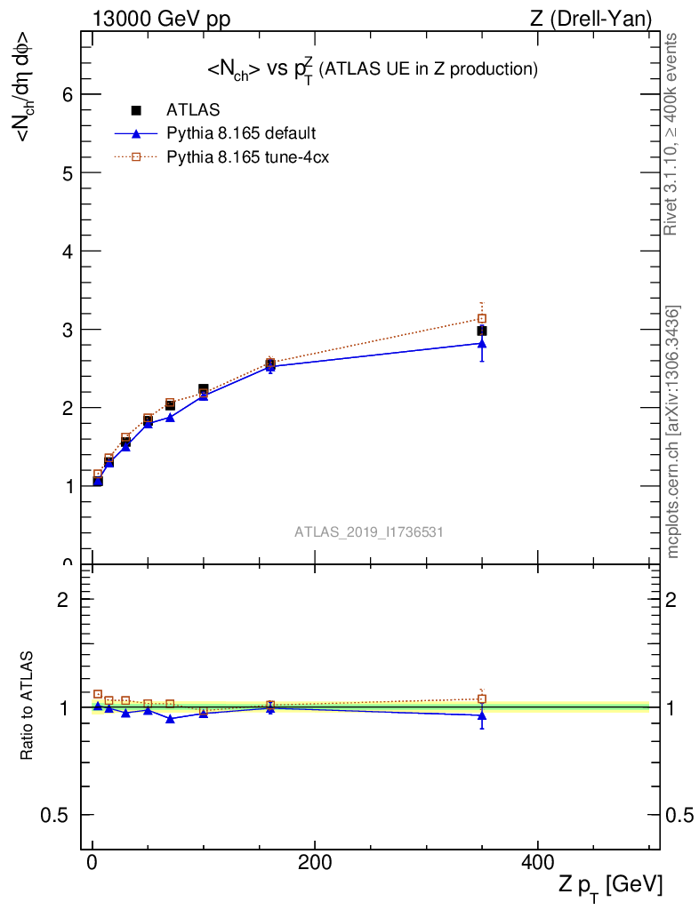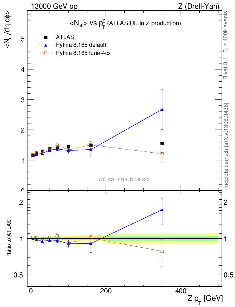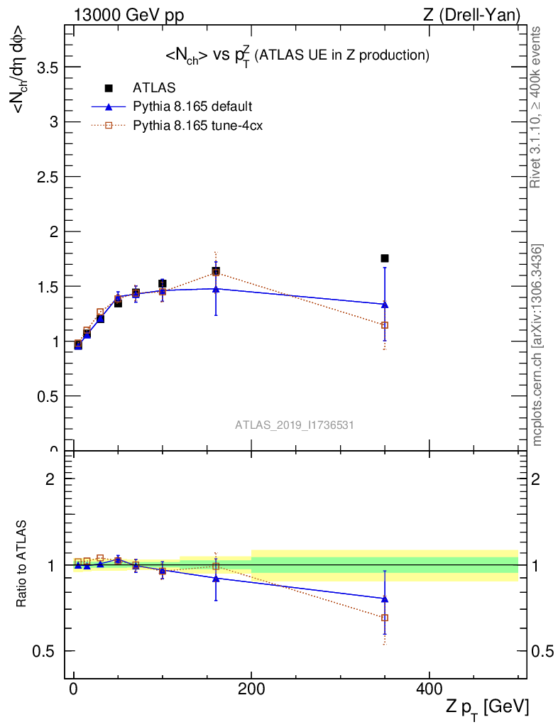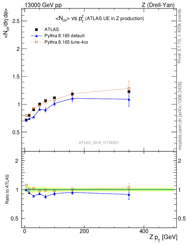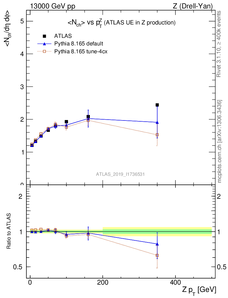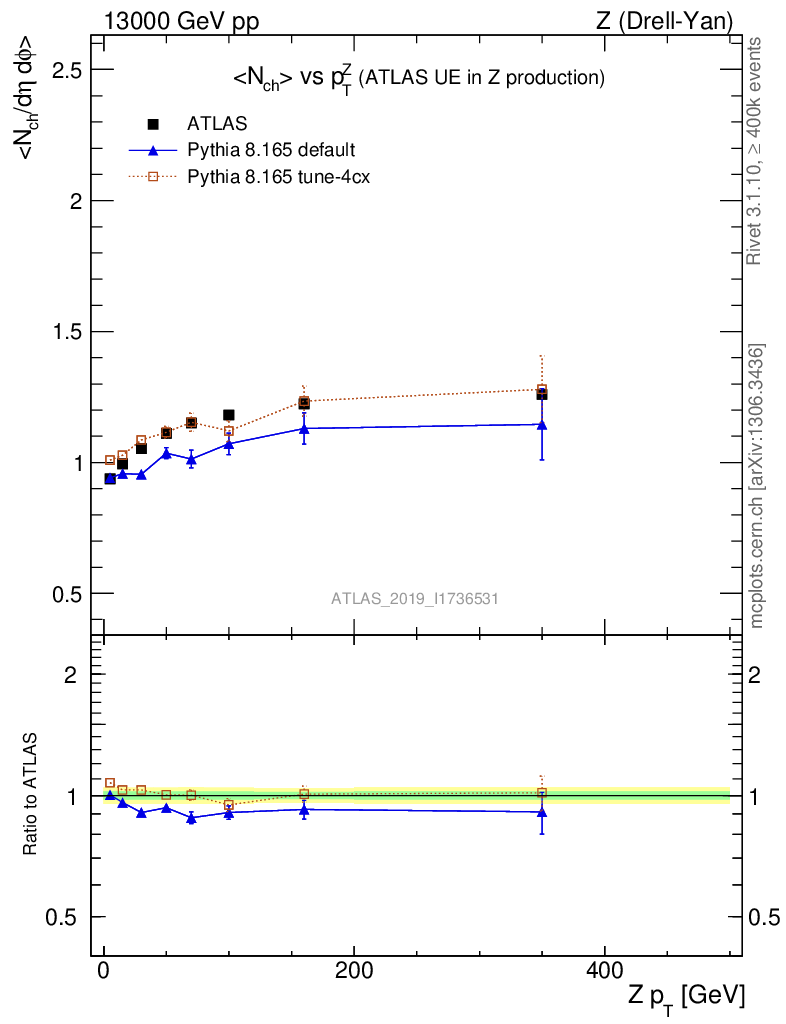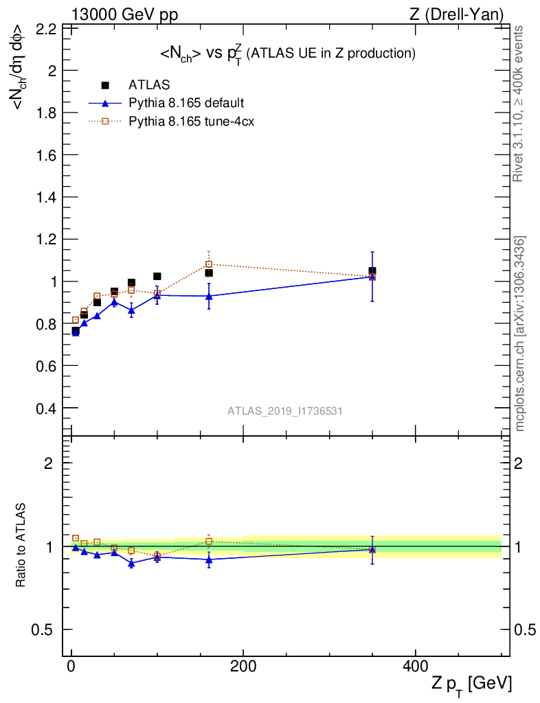 Z (Drell-Yan) : Underlying event : <Nch> vs p
