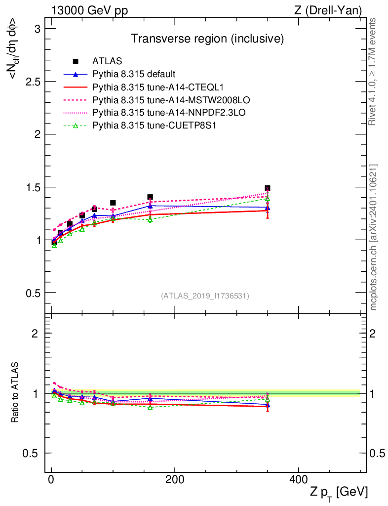 Z (Drell-Yan) : Underlying event : <Nch> vs p