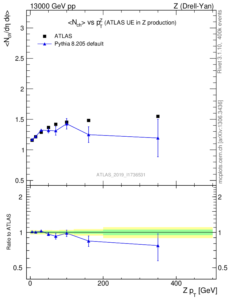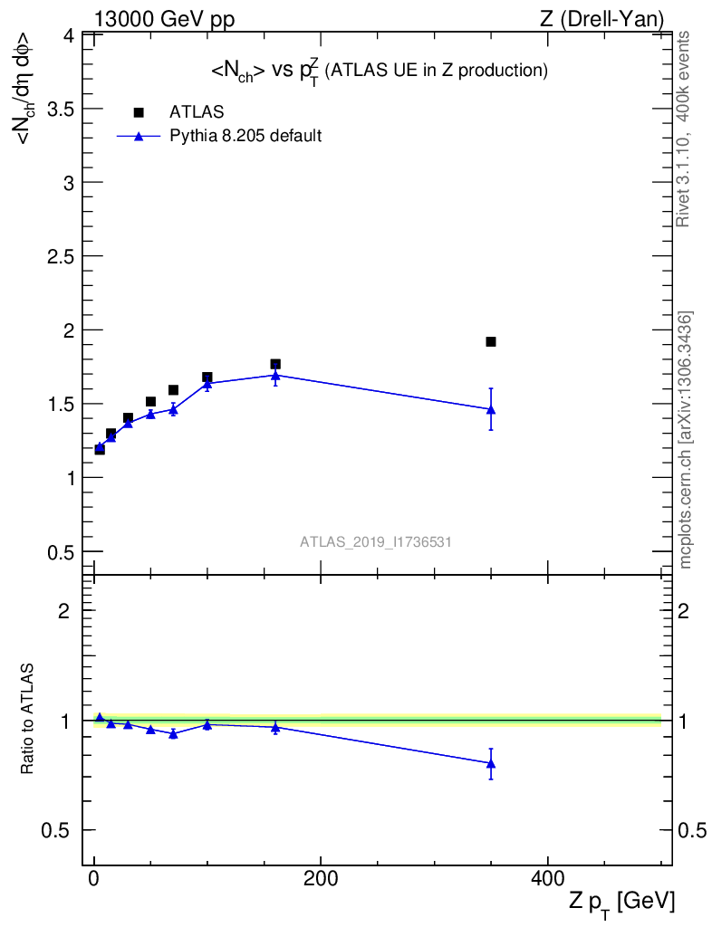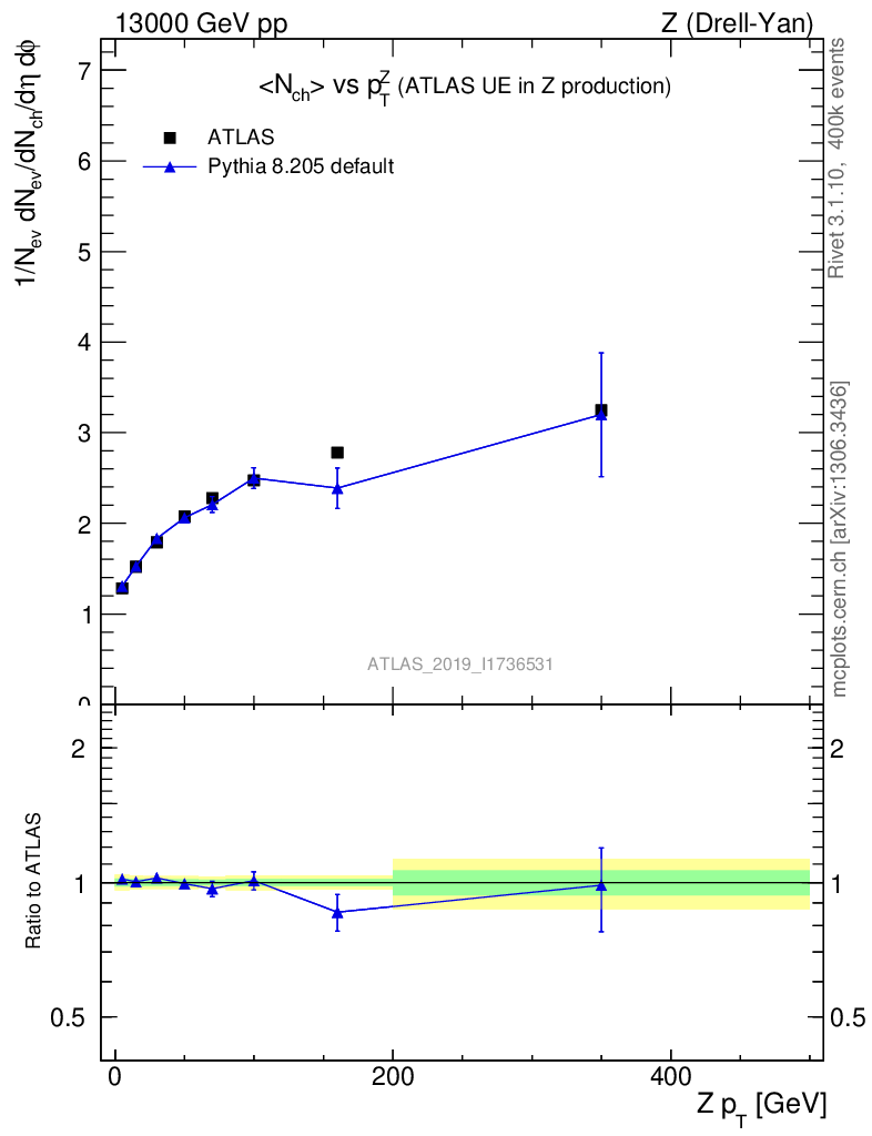 Z (Drell-Yan) : Underlying event : <Nch> vs p