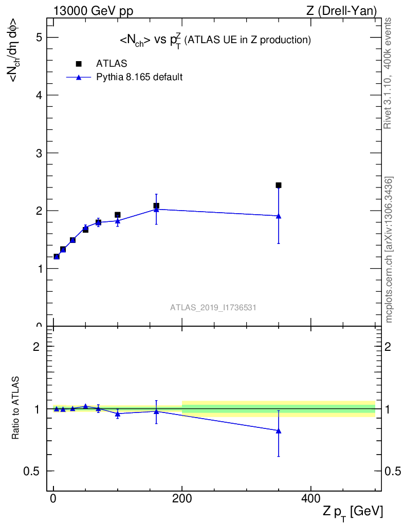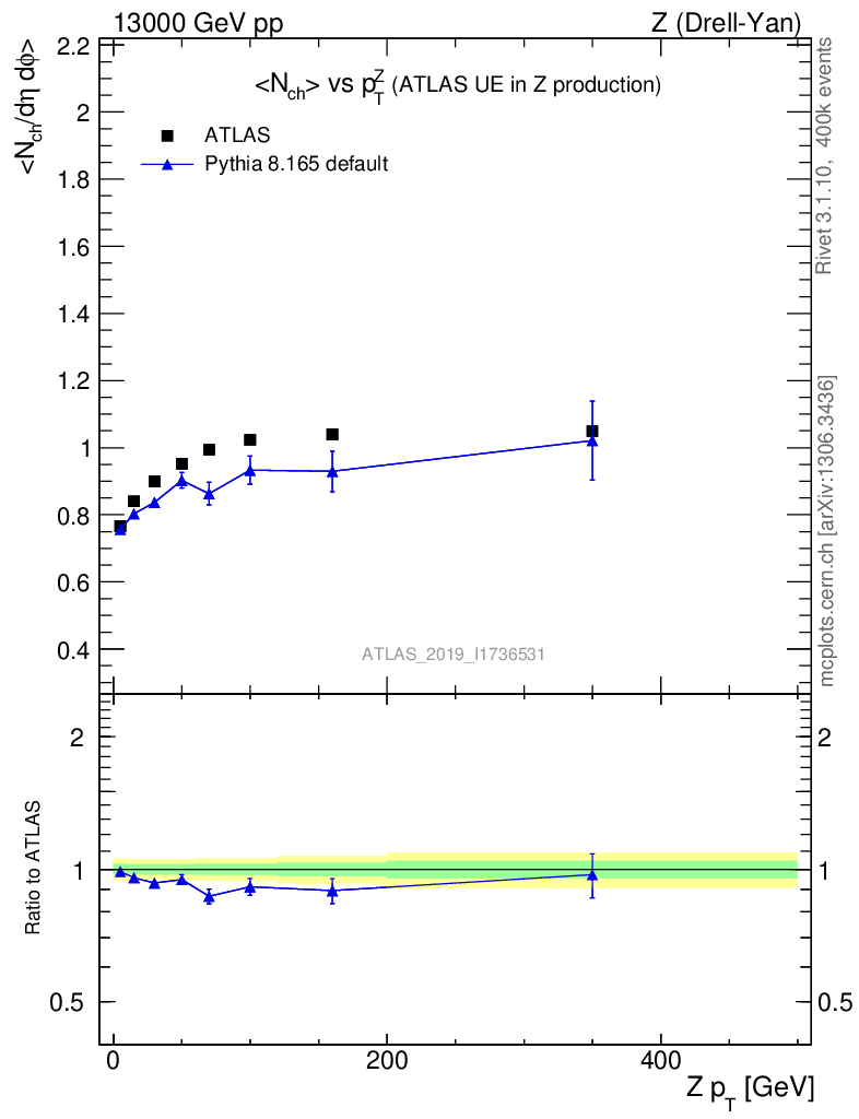 Z (Drell-Yan) : Underlying event : <Nch> vs p