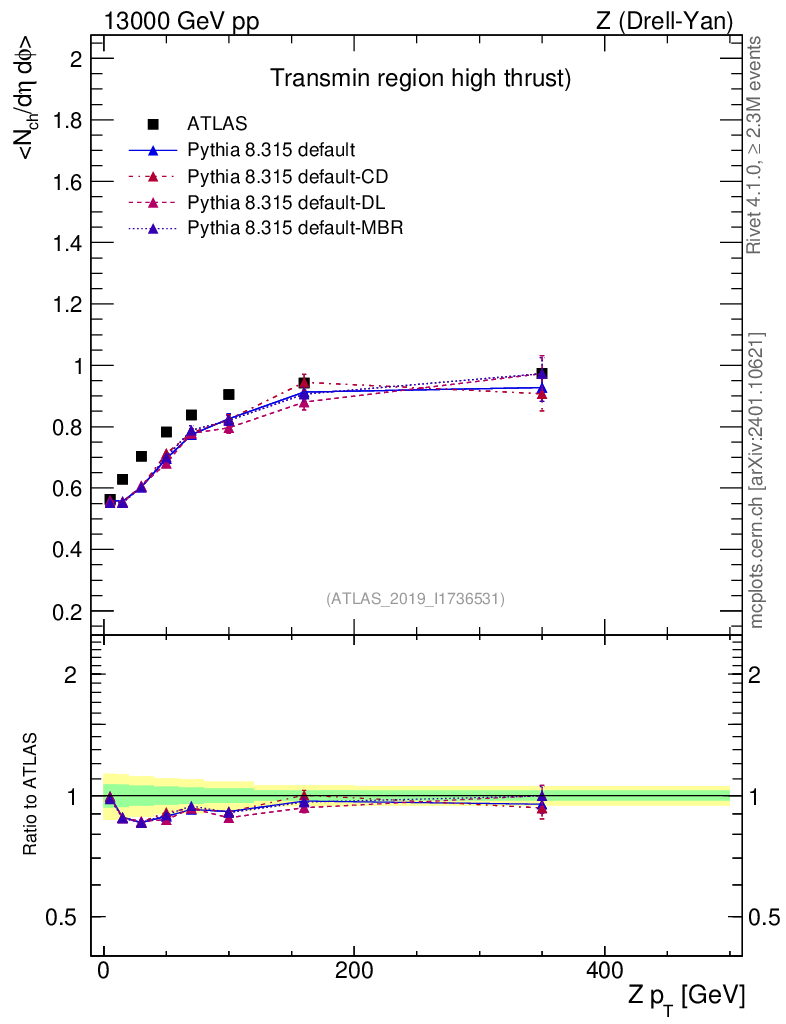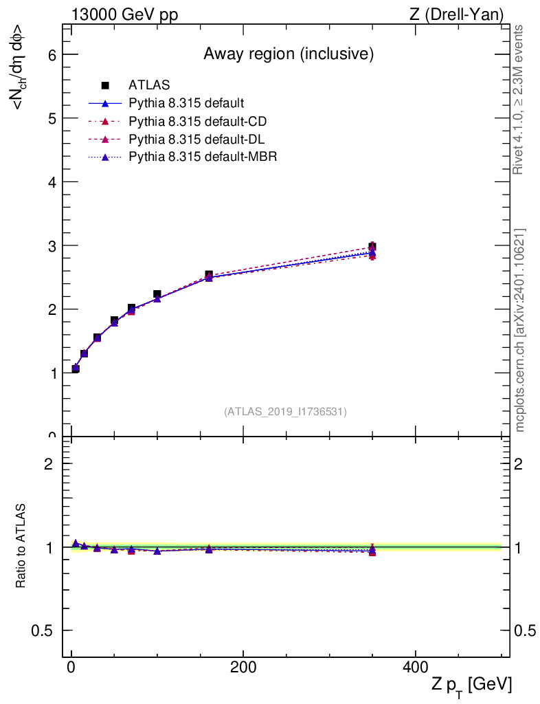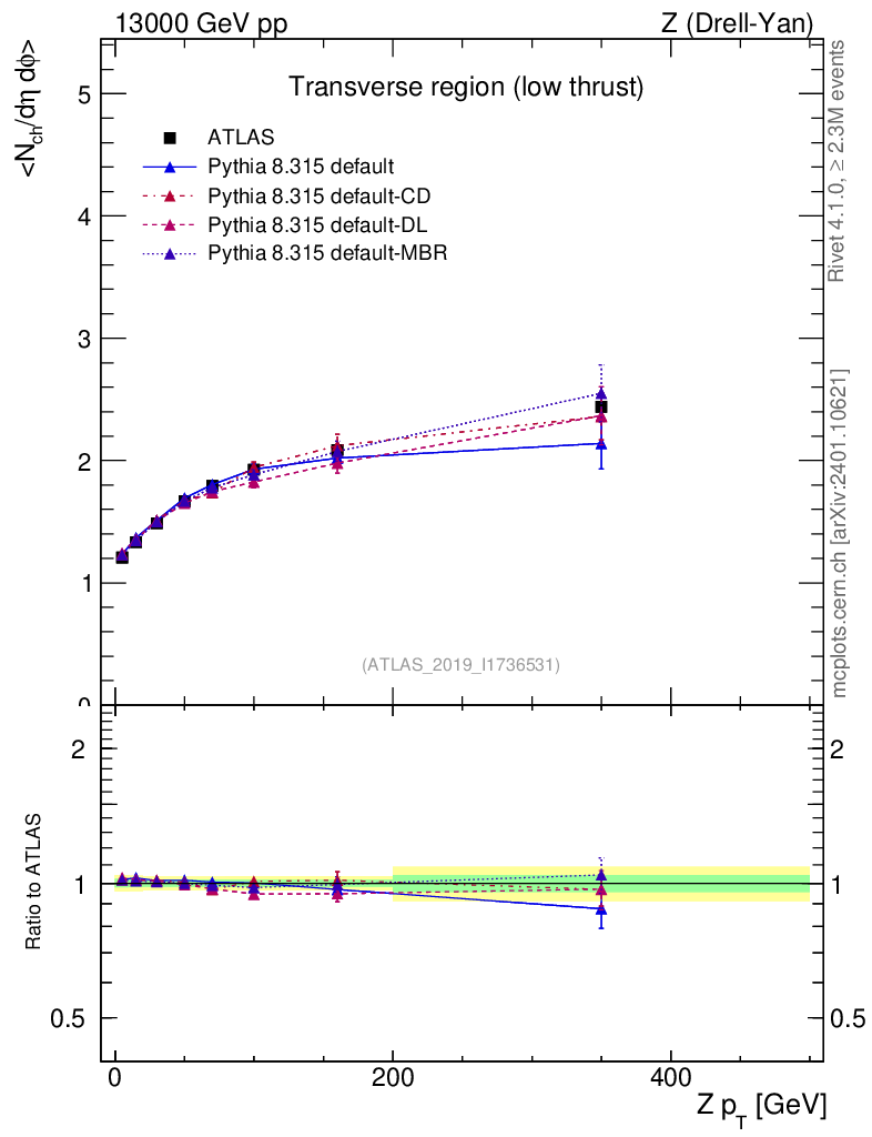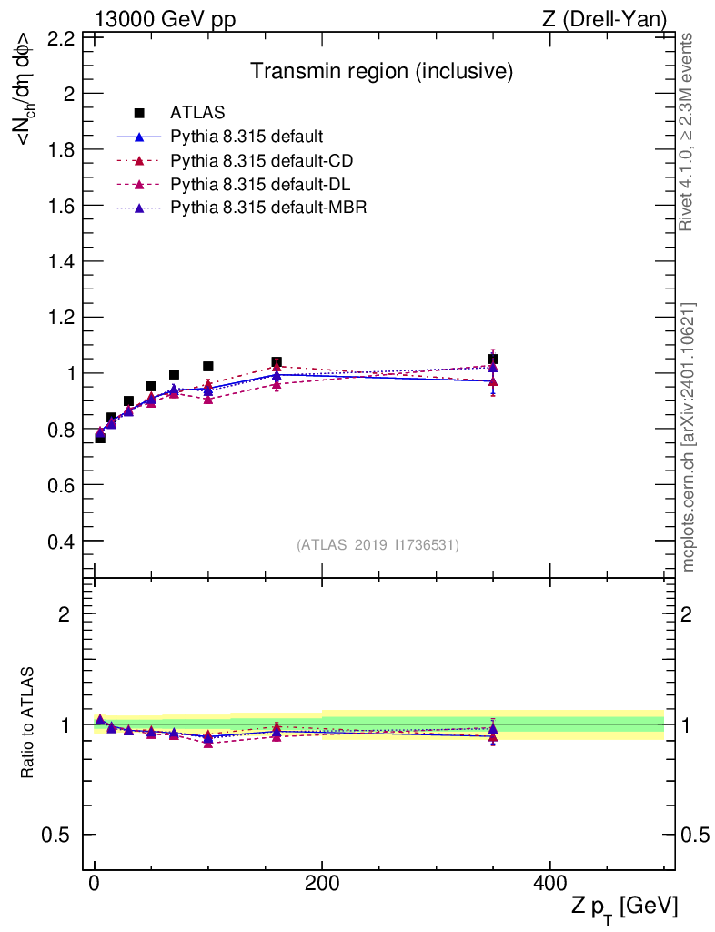 Z (Drell-Yan) : Underlying event : <Nch> vs p
