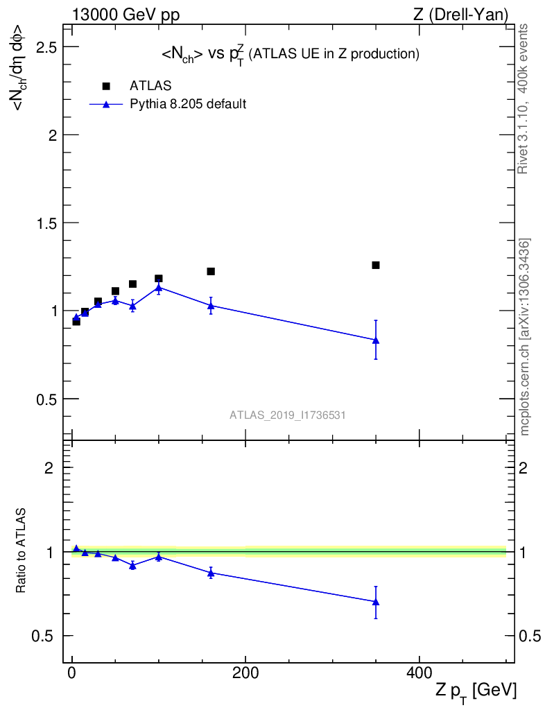 Z (Drell-Yan) : Underlying event : <Nch> vs p