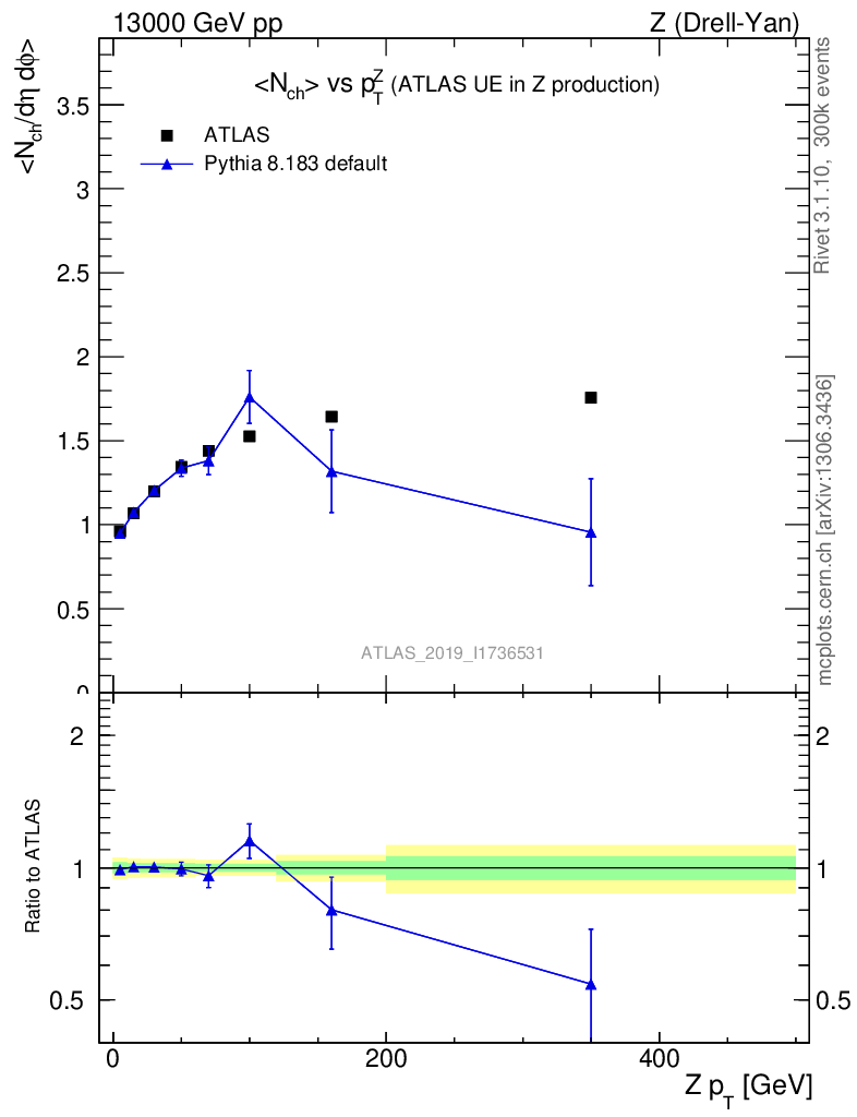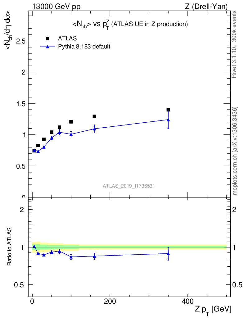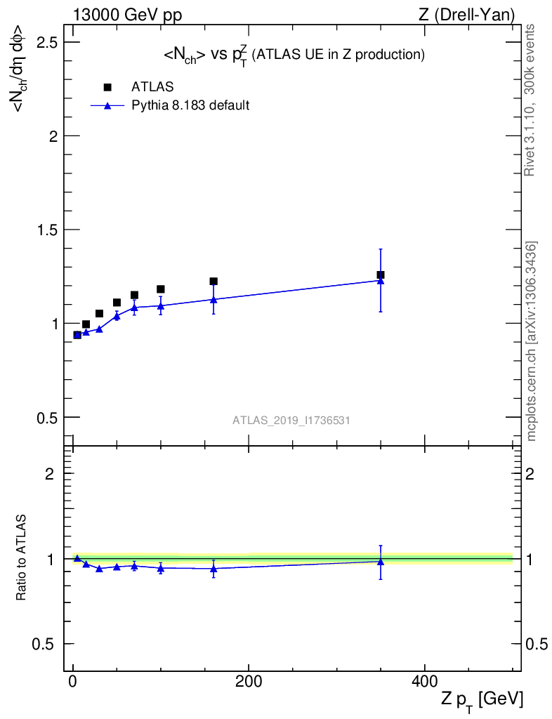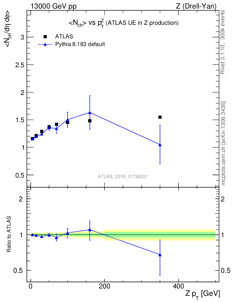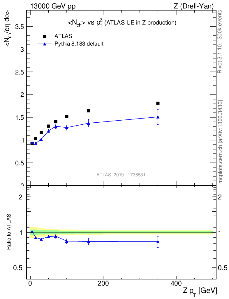 Z (Drell-Yan) : Underlying event : <Nch> vs p