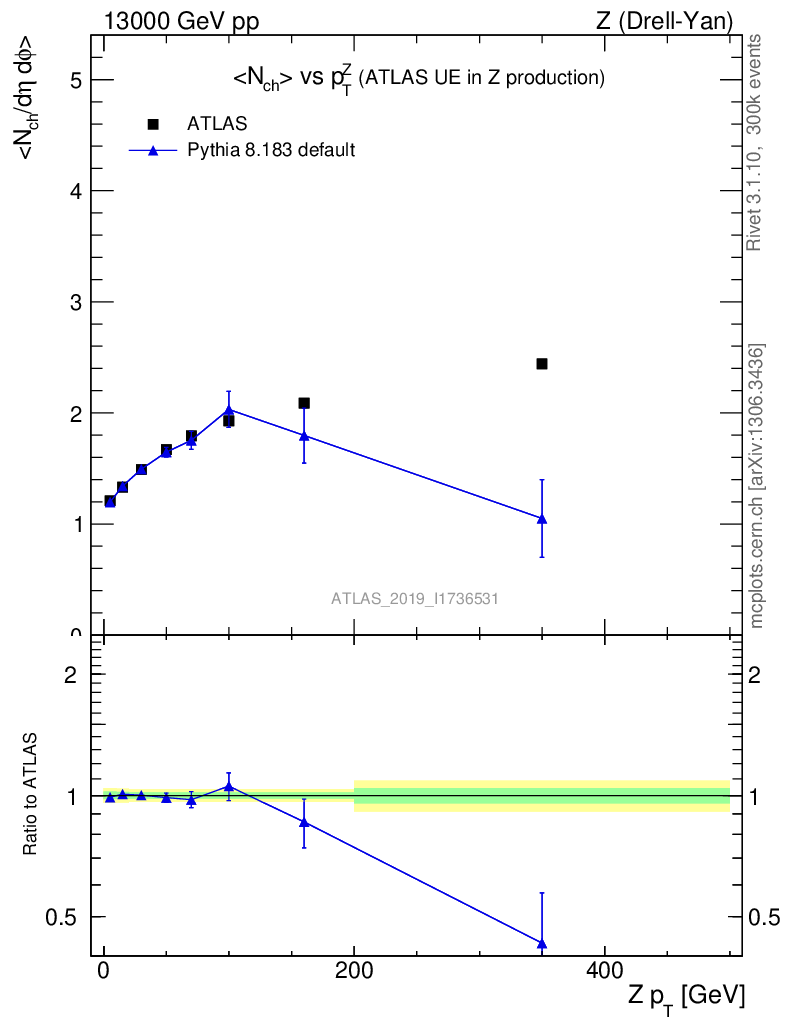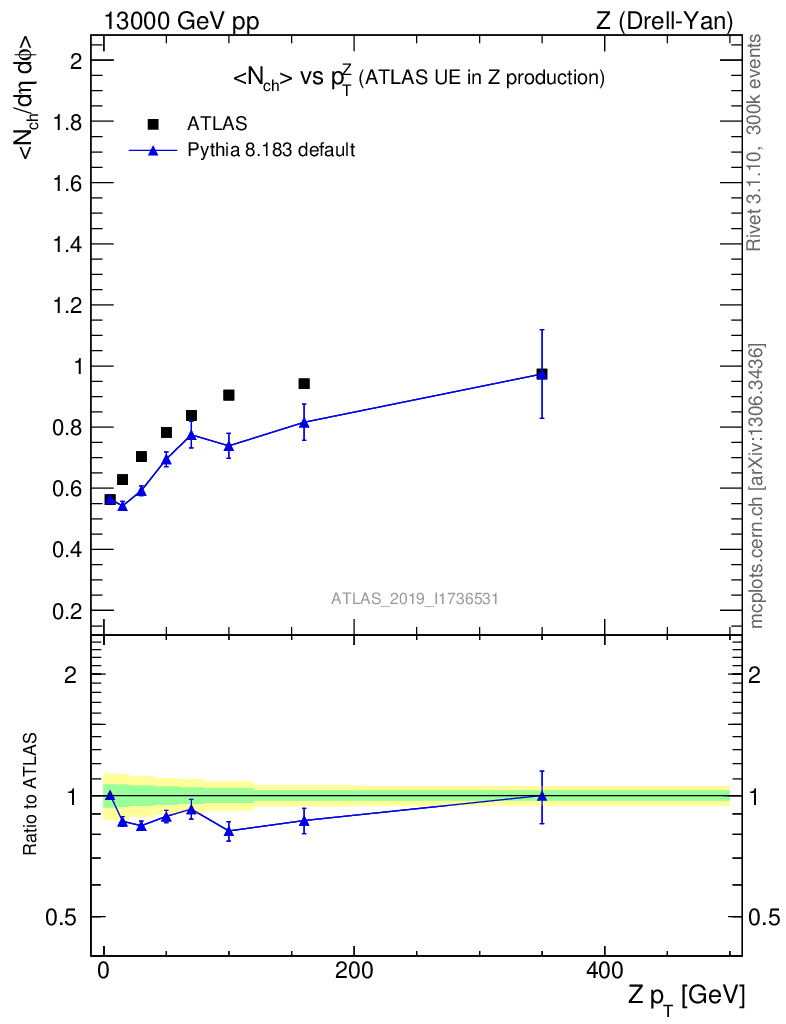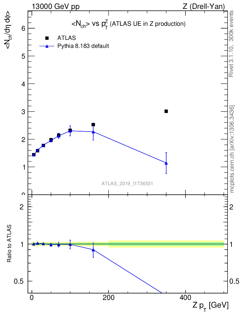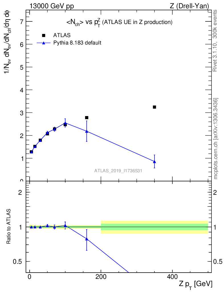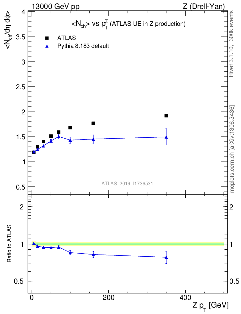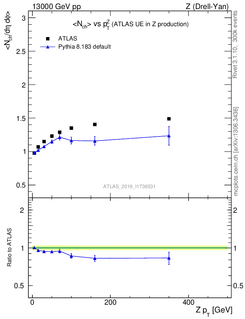 Z (Drell-Yan) : Underlying event : <Nch> vs p