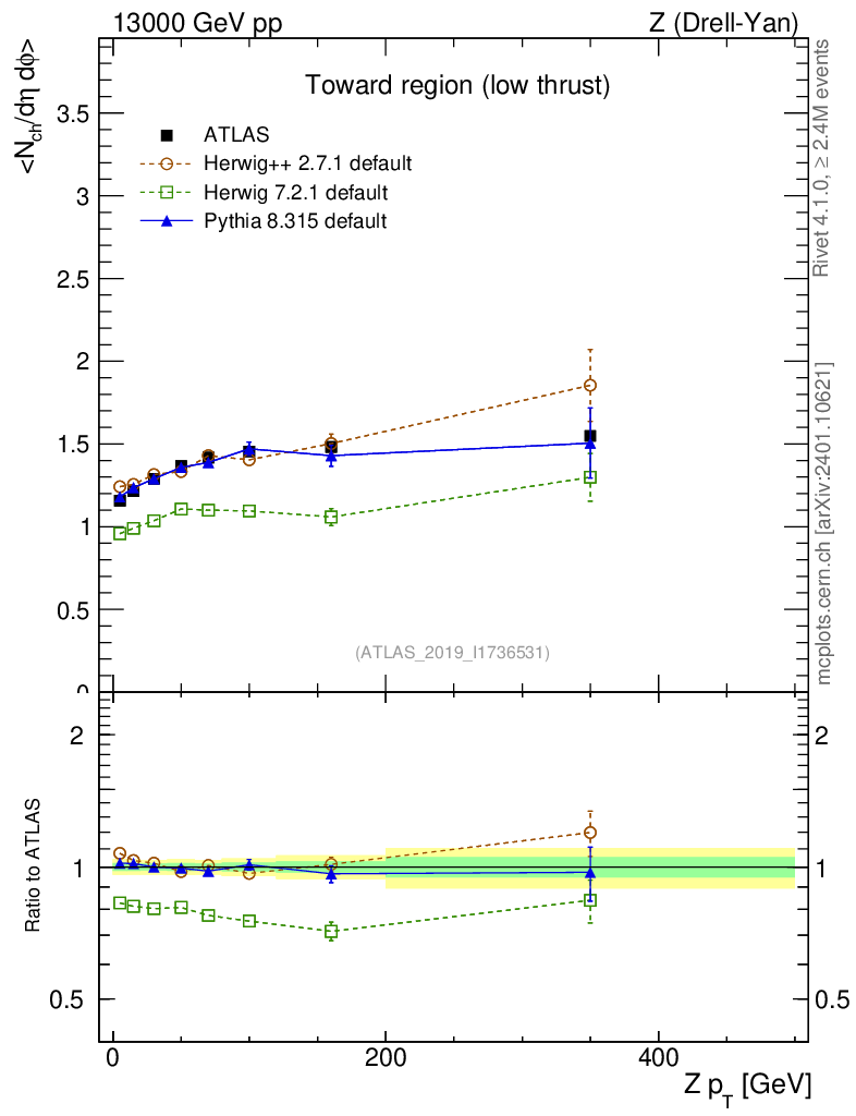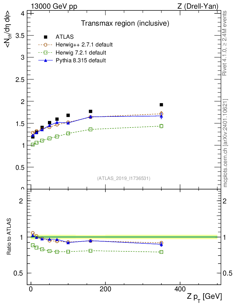 Z (Drell-Yan) : Underlying event : <Nch> vs p