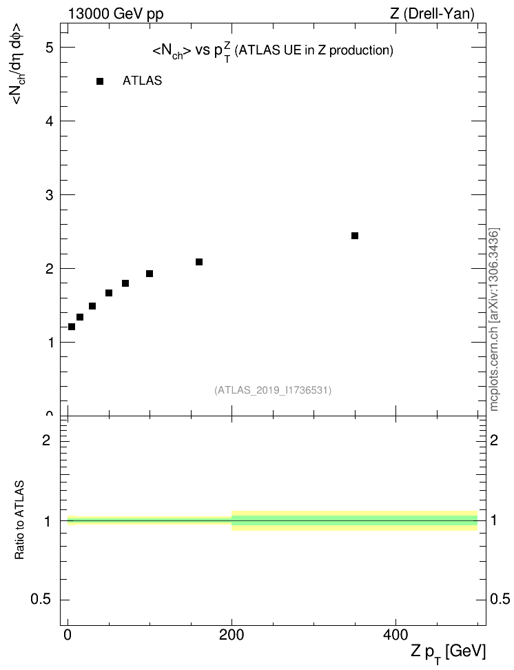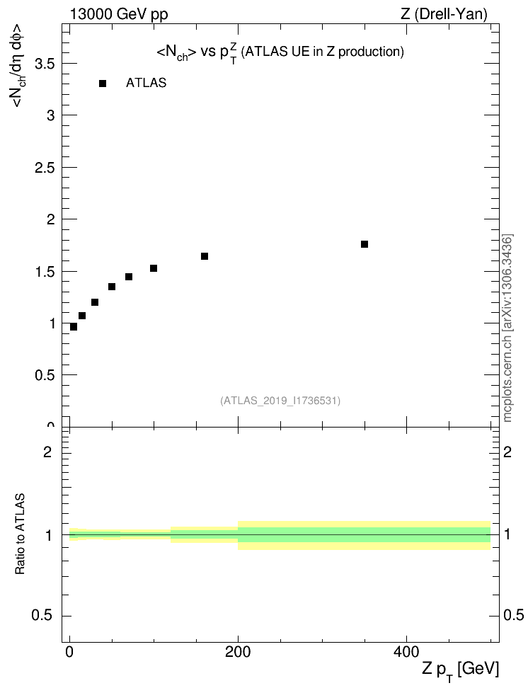 Z (Drell-Yan) : Underlying event : <Nch> vs p