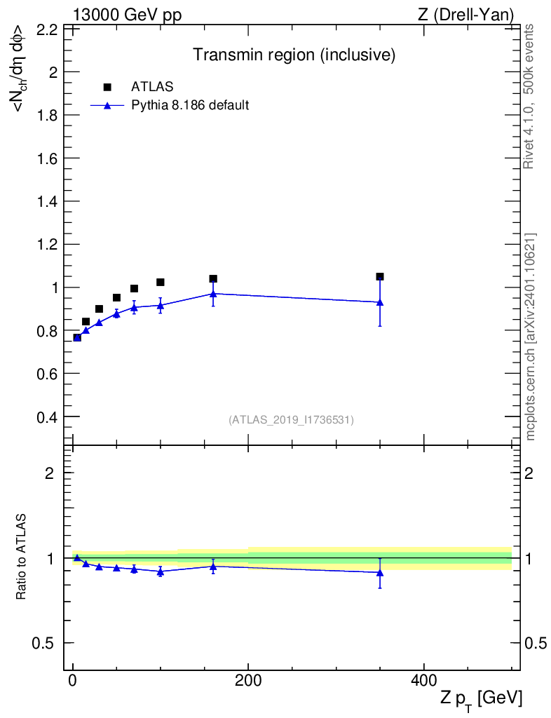 Z (Drell-Yan) : Underlying event : <Nch> vs p