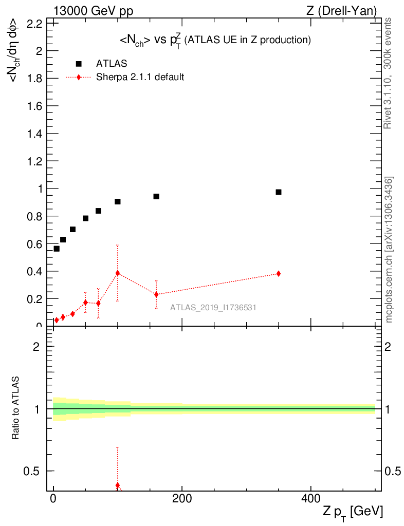 Z (Drell-Yan) : Underlying event : <Nch> vs p