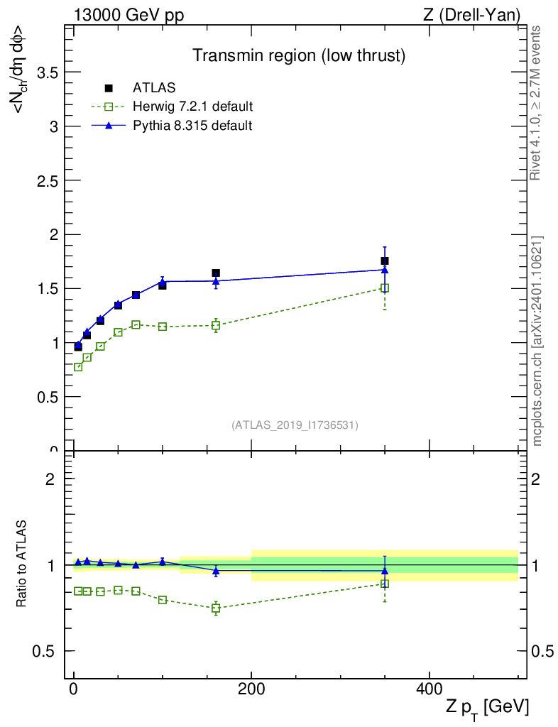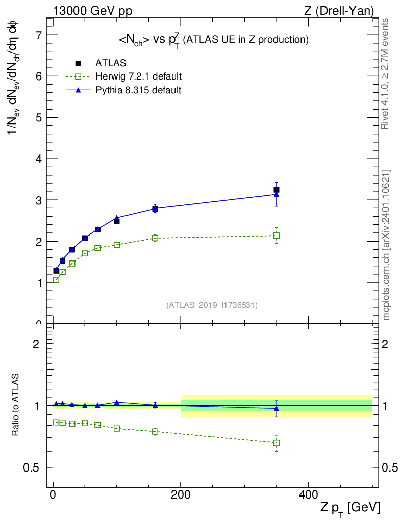 Z (Drell-Yan) : Underlying event : <Nch> vs p
