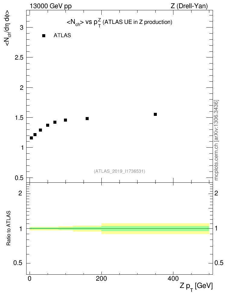 Z (Drell-Yan) : Underlying event : <Nch> vs p