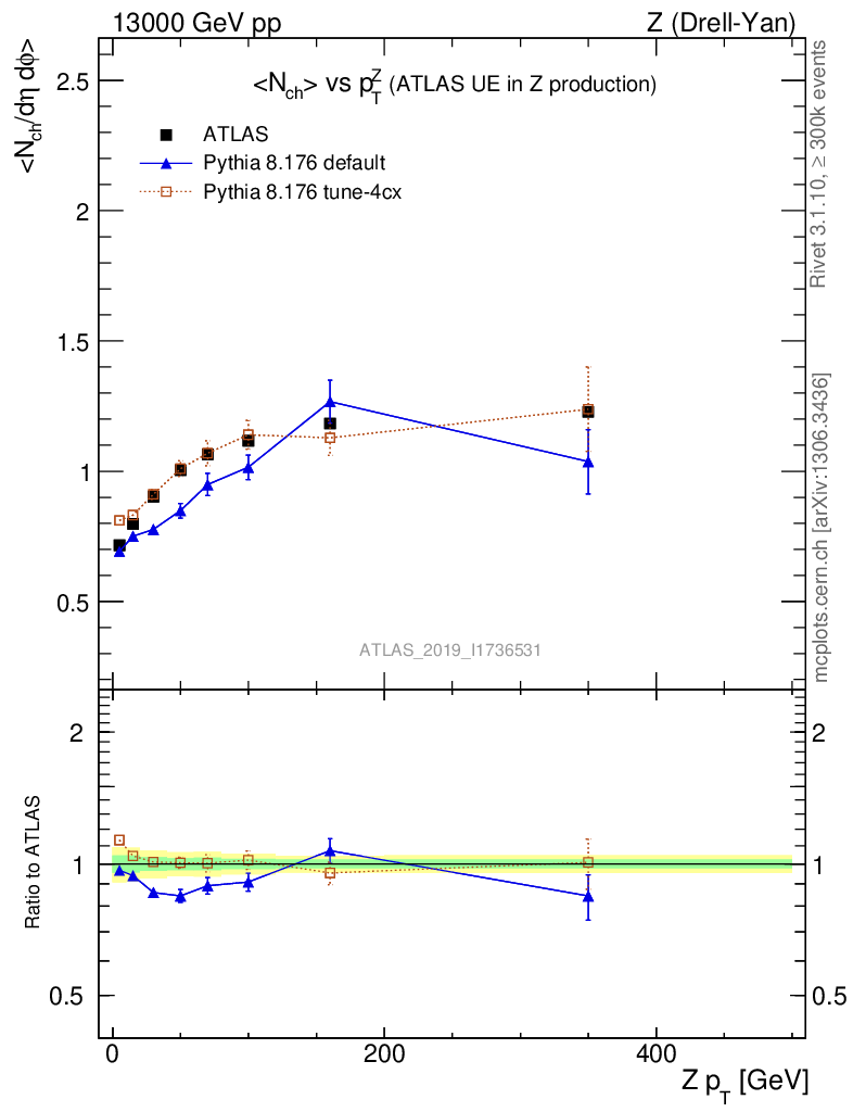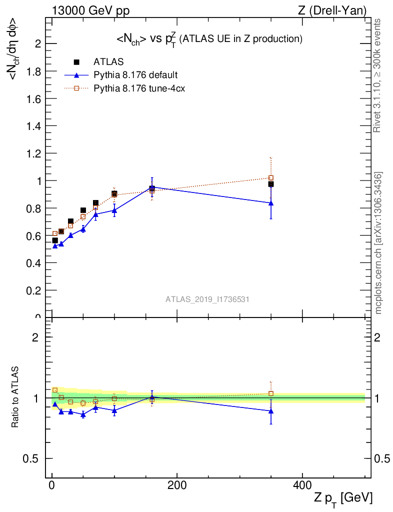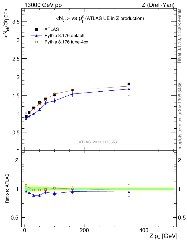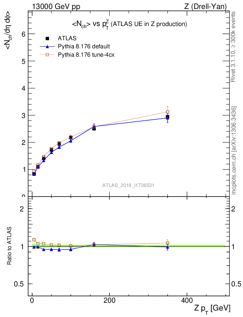 Z (Drell-Yan) : Underlying event : <Nch> vs p