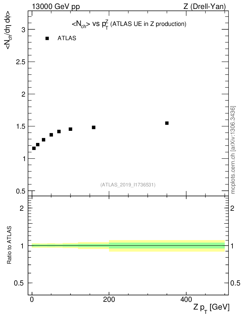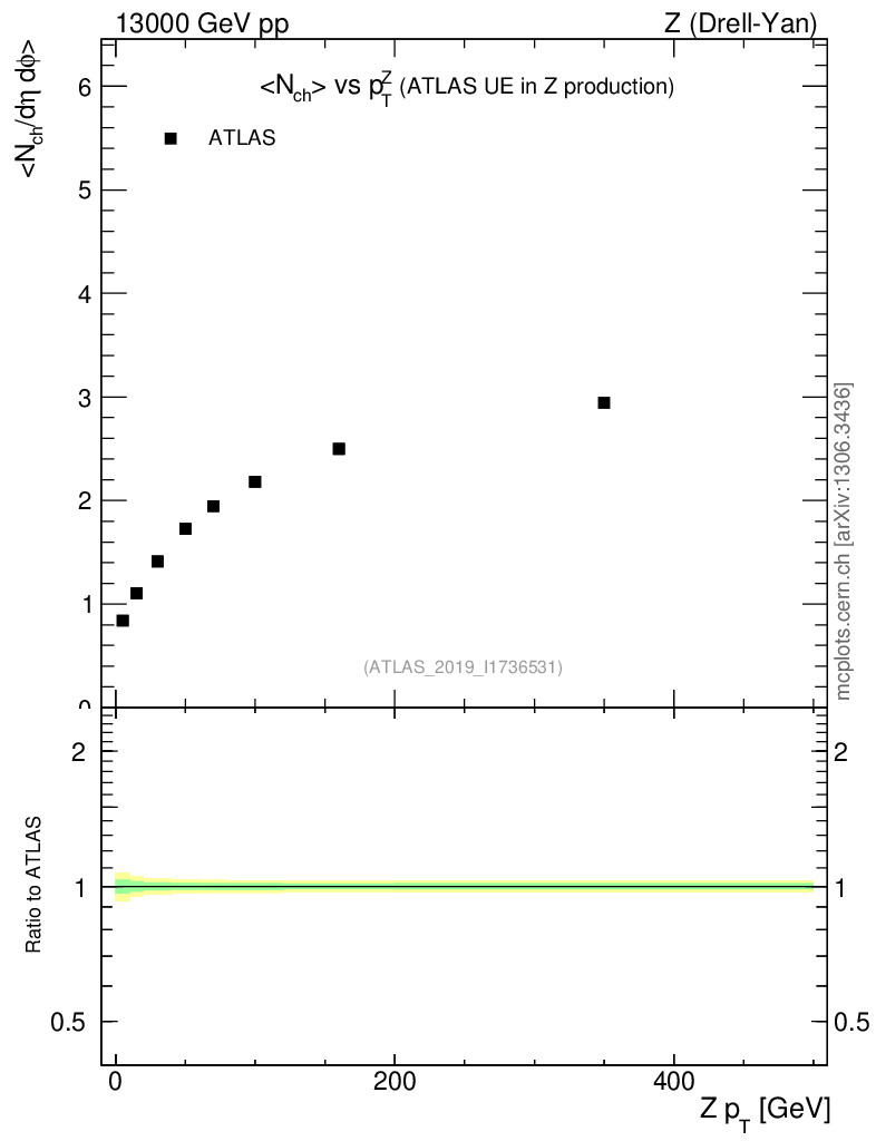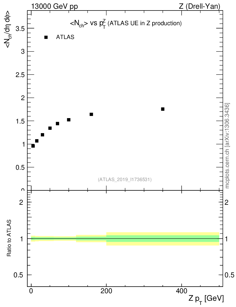 Z (Drell-Yan) : Underlying event : <Nch> vs p