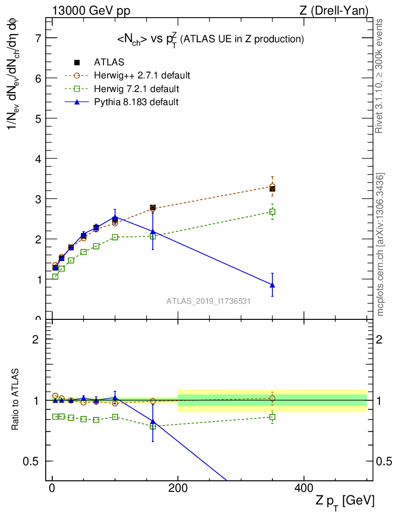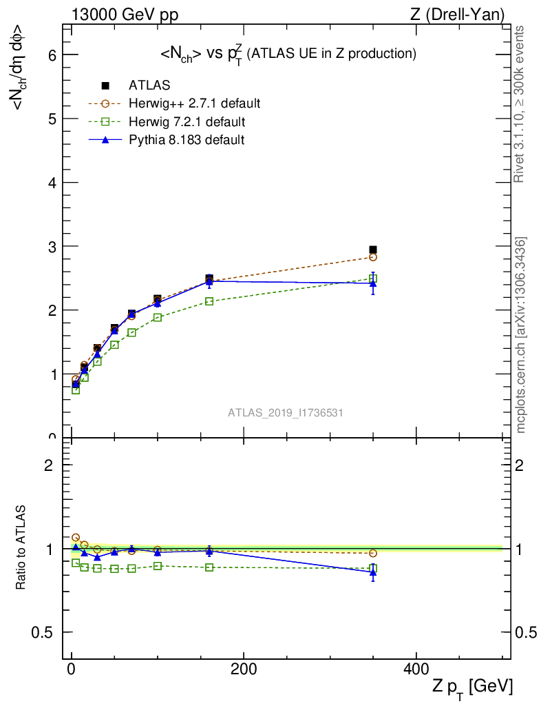 Z (Drell-Yan) : Underlying event : <Nch> vs p