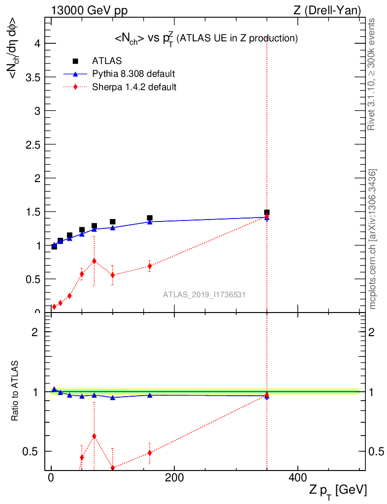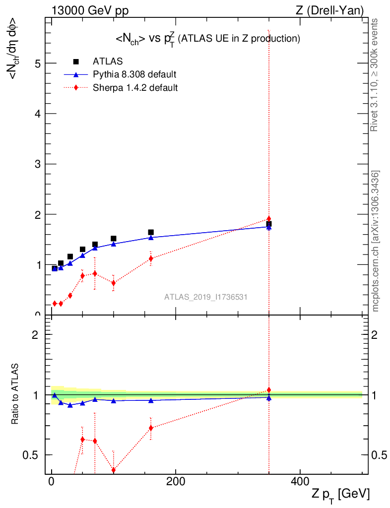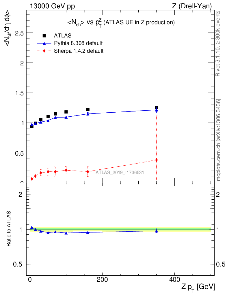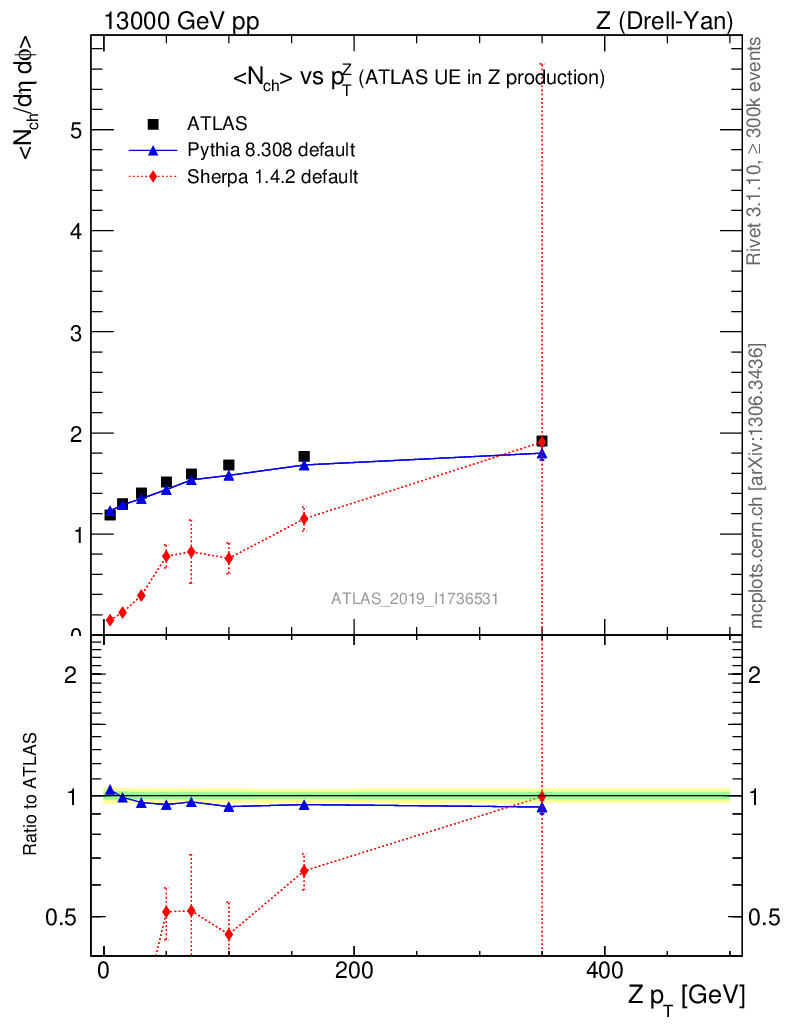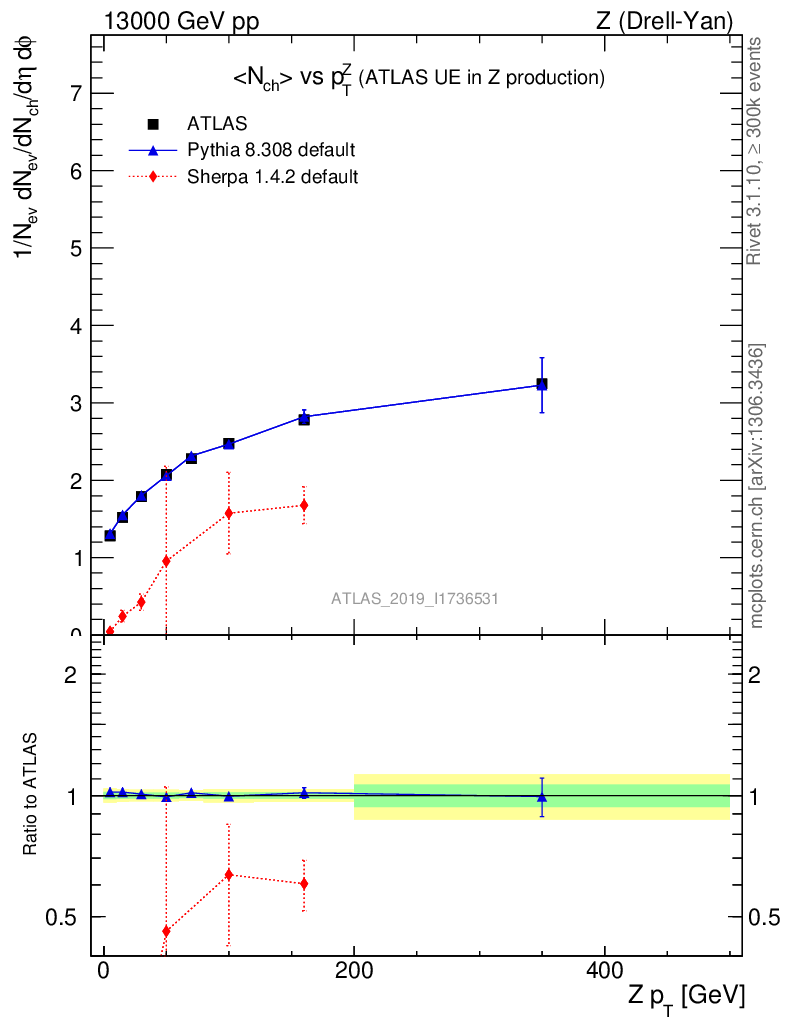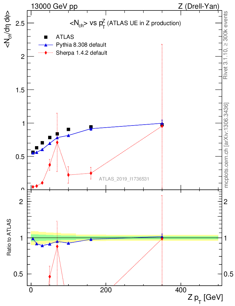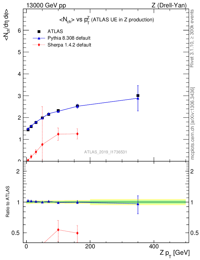 Z (Drell-Yan) : Underlying event : <Nch> vs p