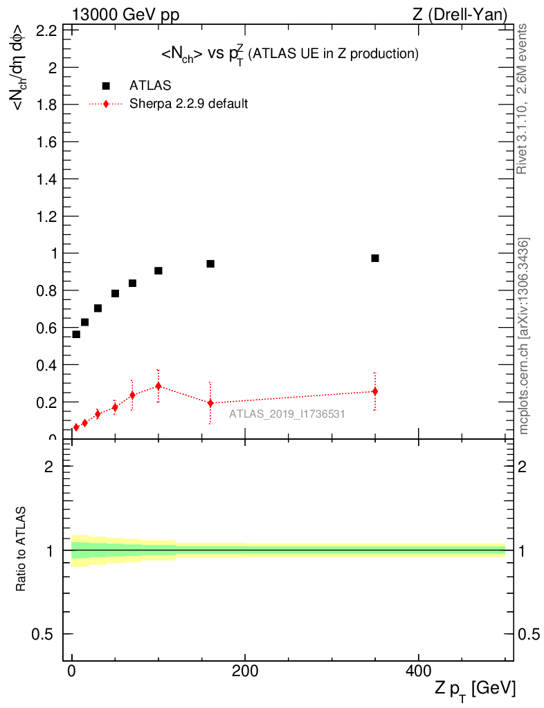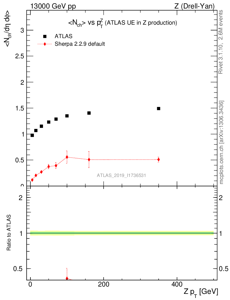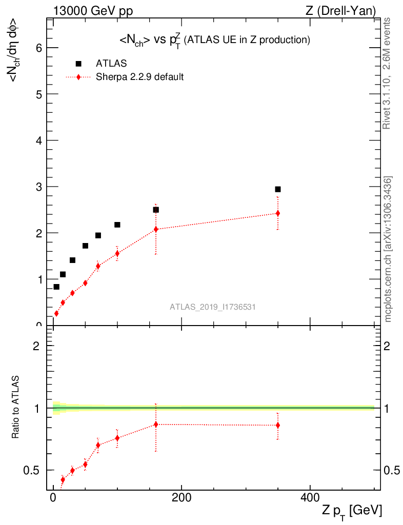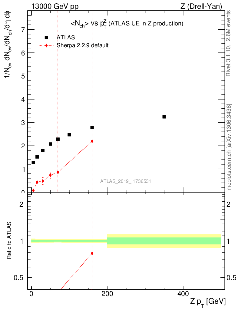 Z (Drell-Yan) : Underlying event : <Nch> vs p