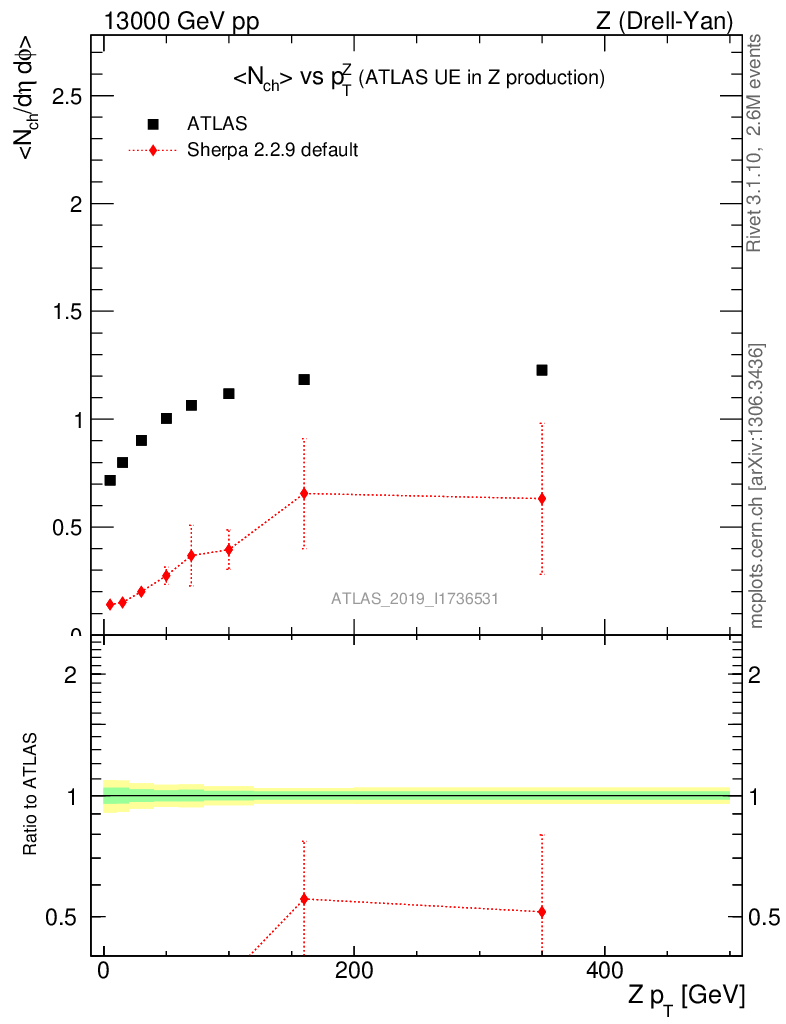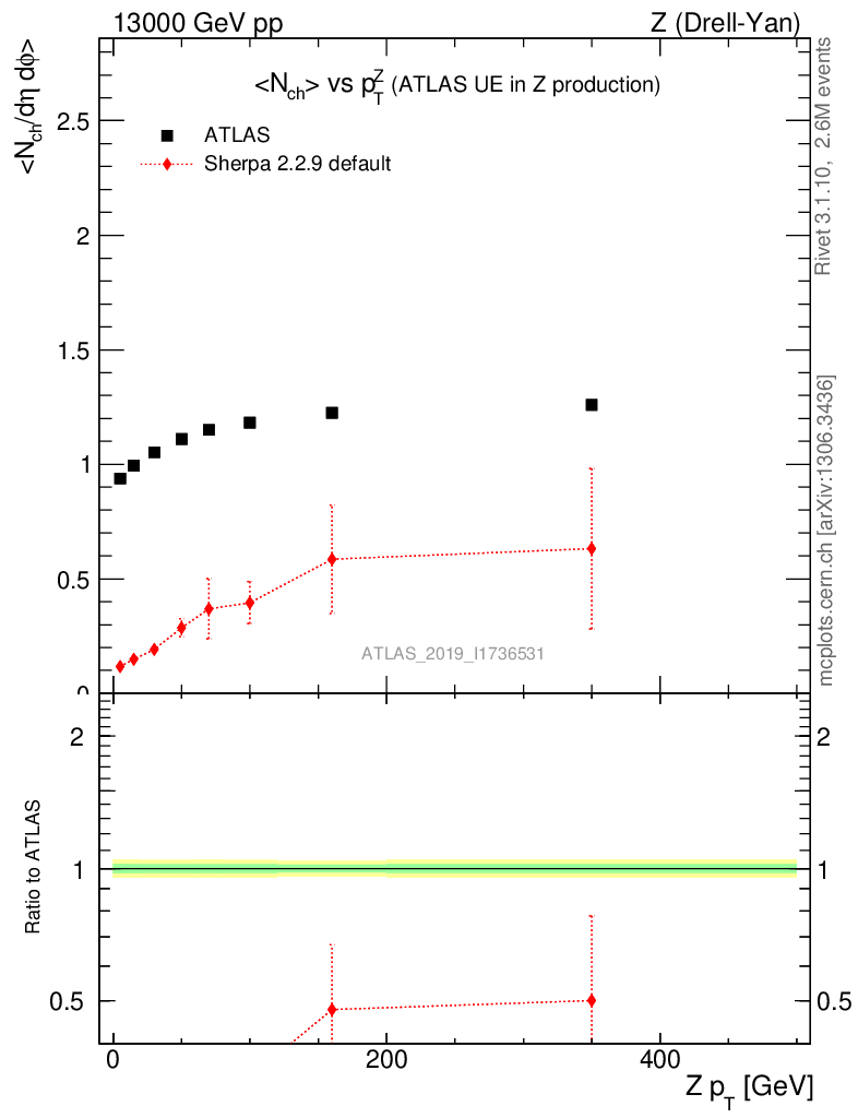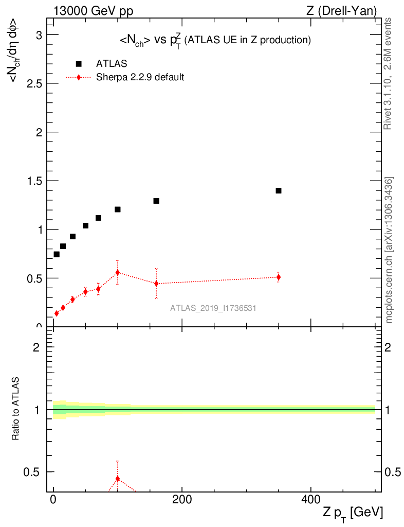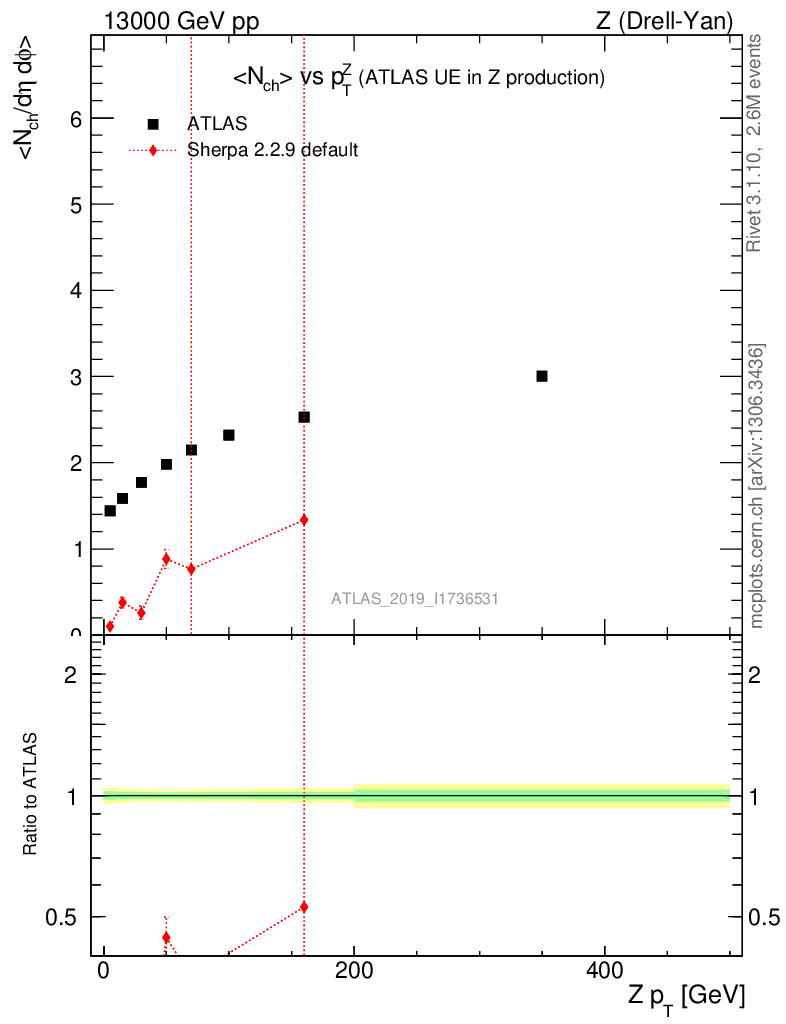 Z (Drell-Yan) : Underlying event : <Nch> vs p