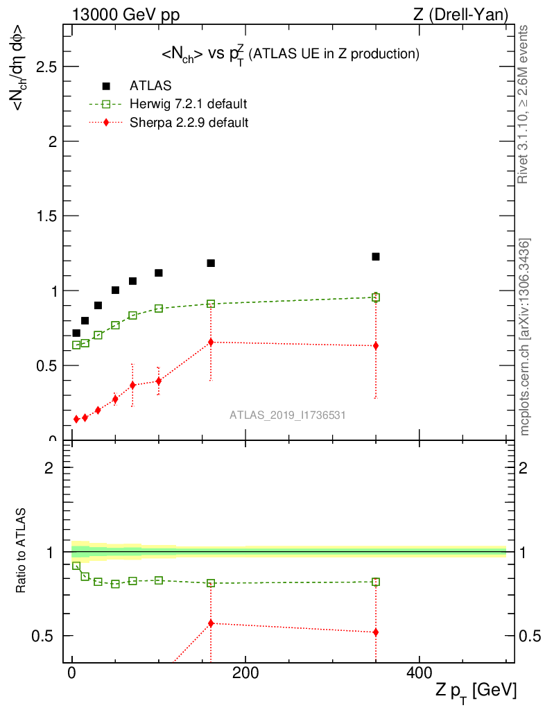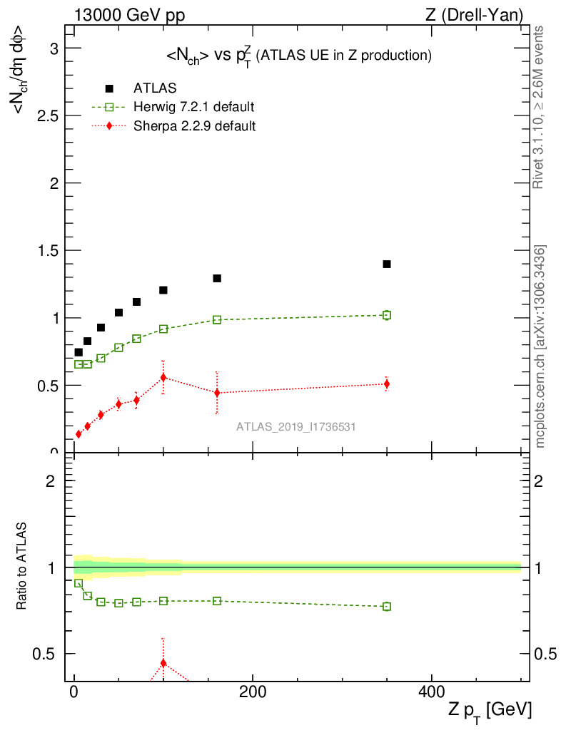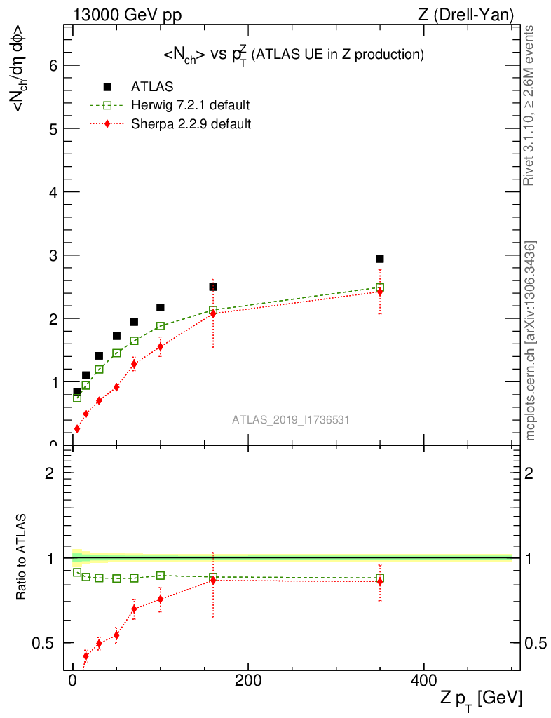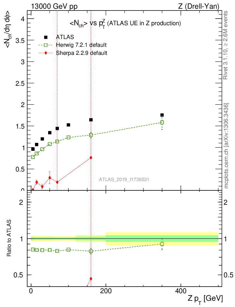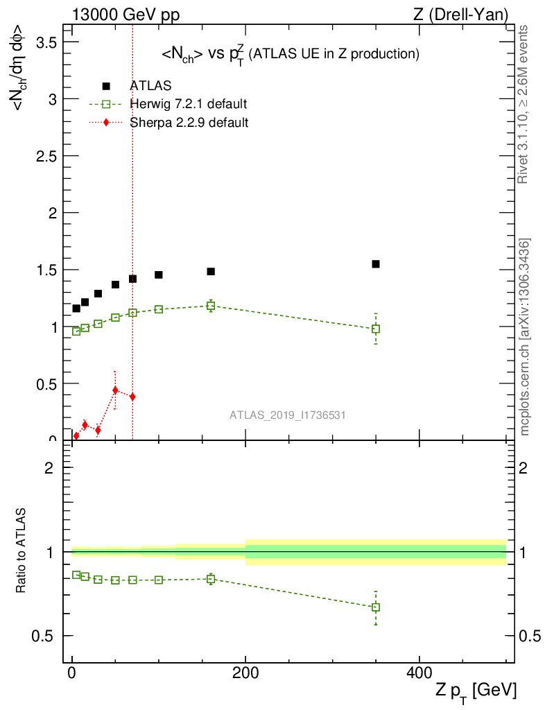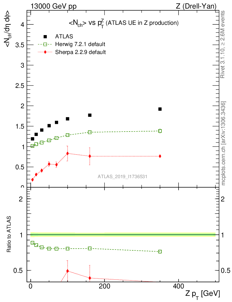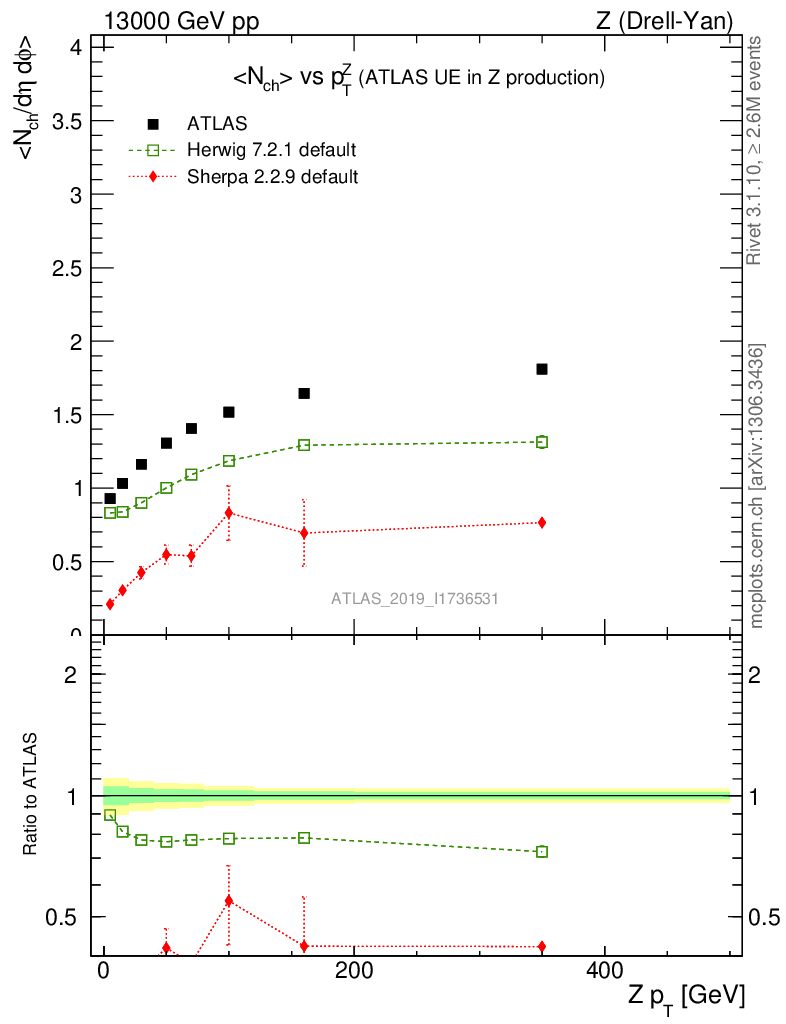 Z (Drell-Yan) : Underlying event : <Nch> vs p