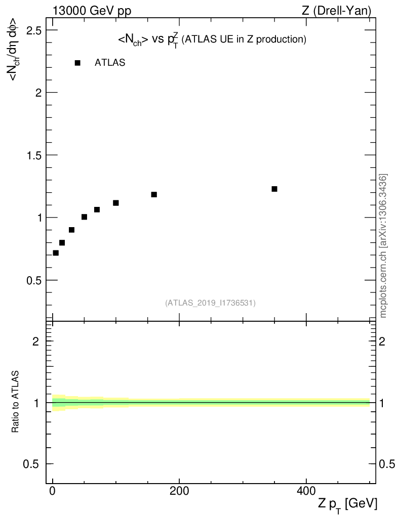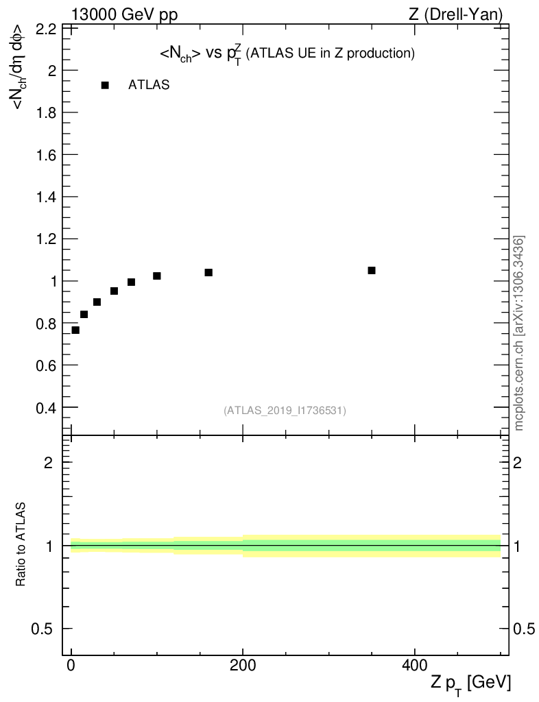 Z (Drell-Yan) : Underlying event : <Nch> vs p